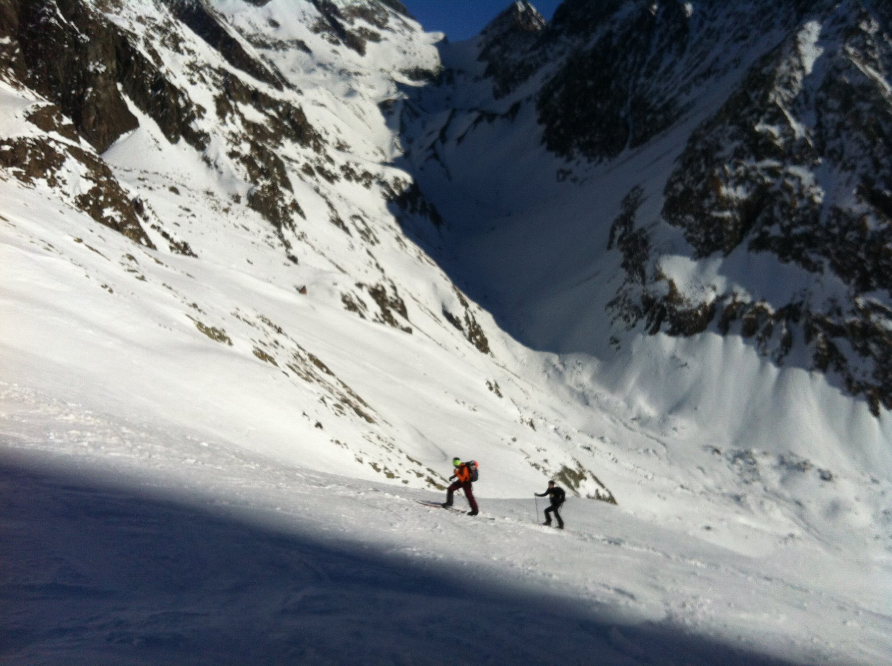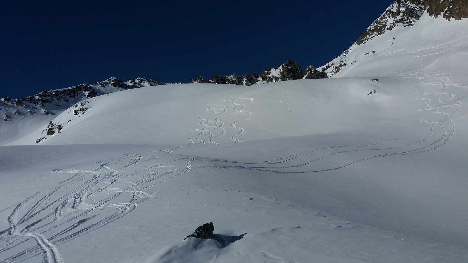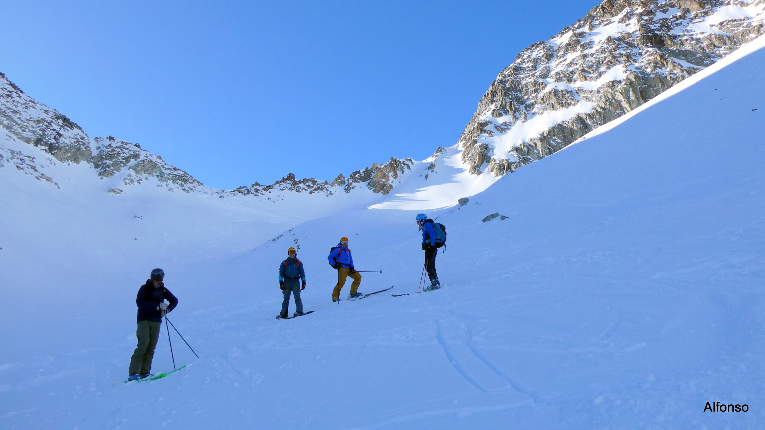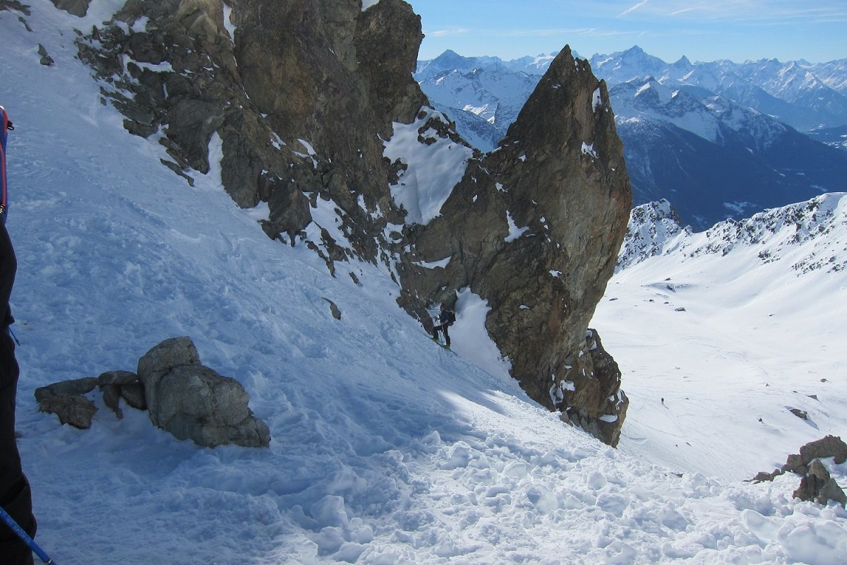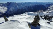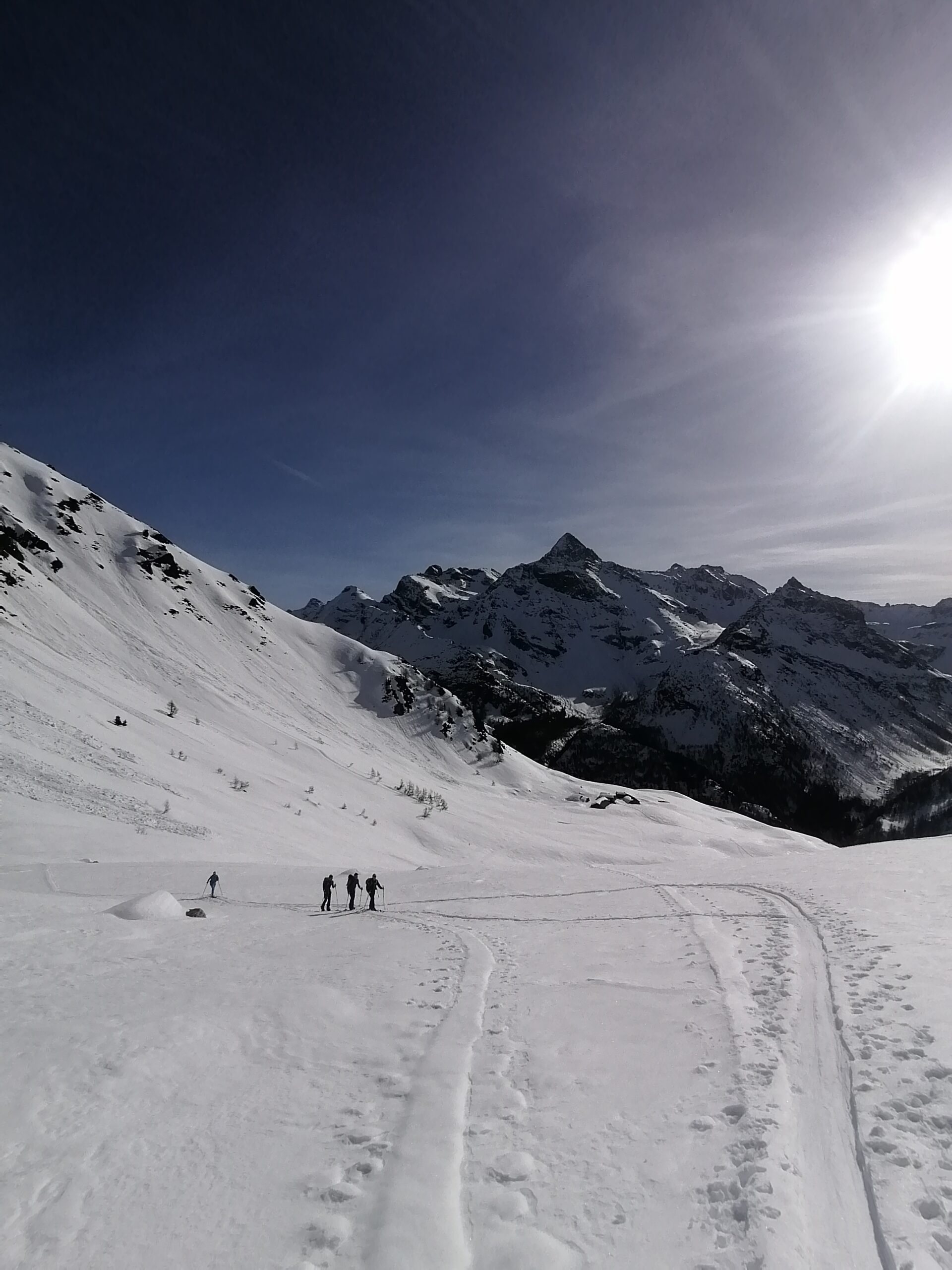 Si prosegue per dossi e pendii poco inclinati e aperti, puntando alla dorsale di sinistra che separa due valloni. Raggiunta la dorsale la si percorre oppure si risale il pendio di destra, per proseguire passando sotto le pareti sud della Tour de la Tsa.