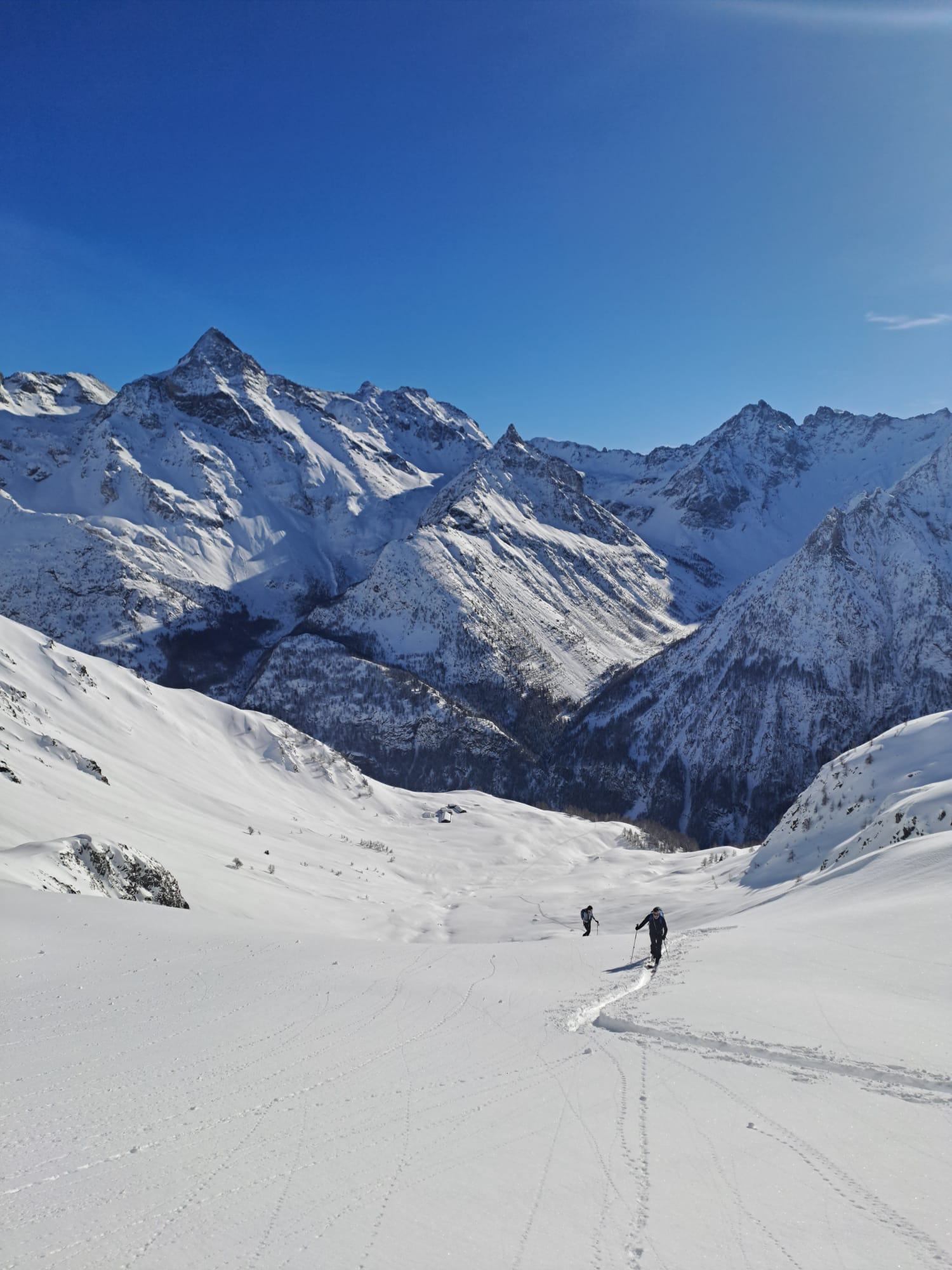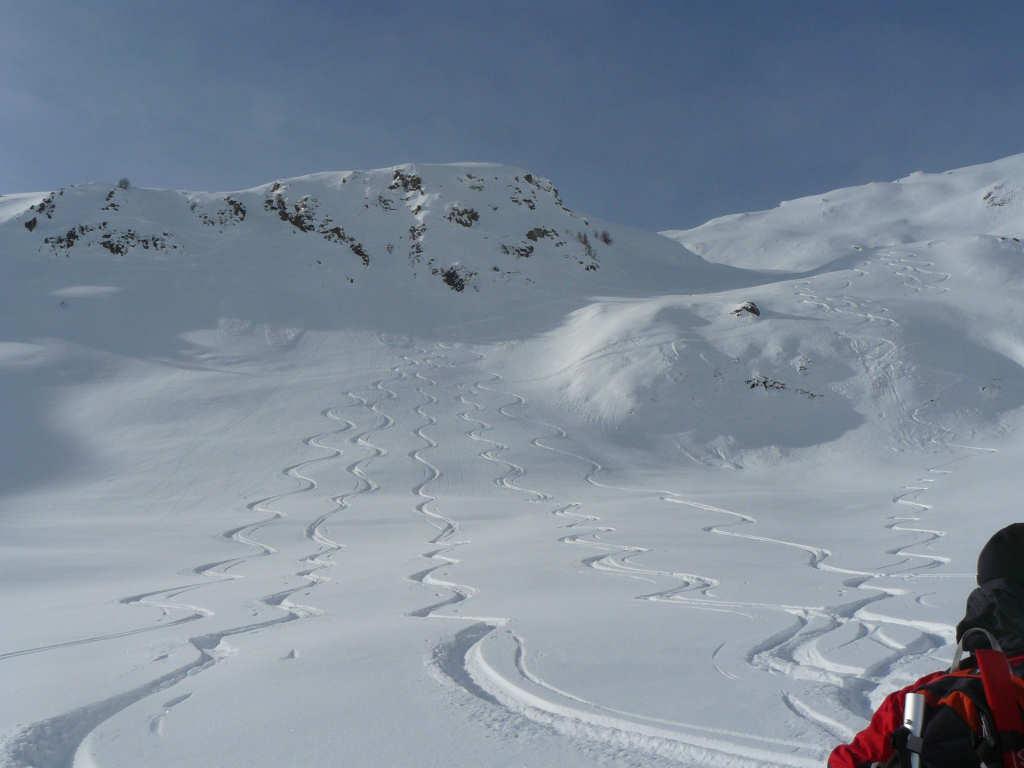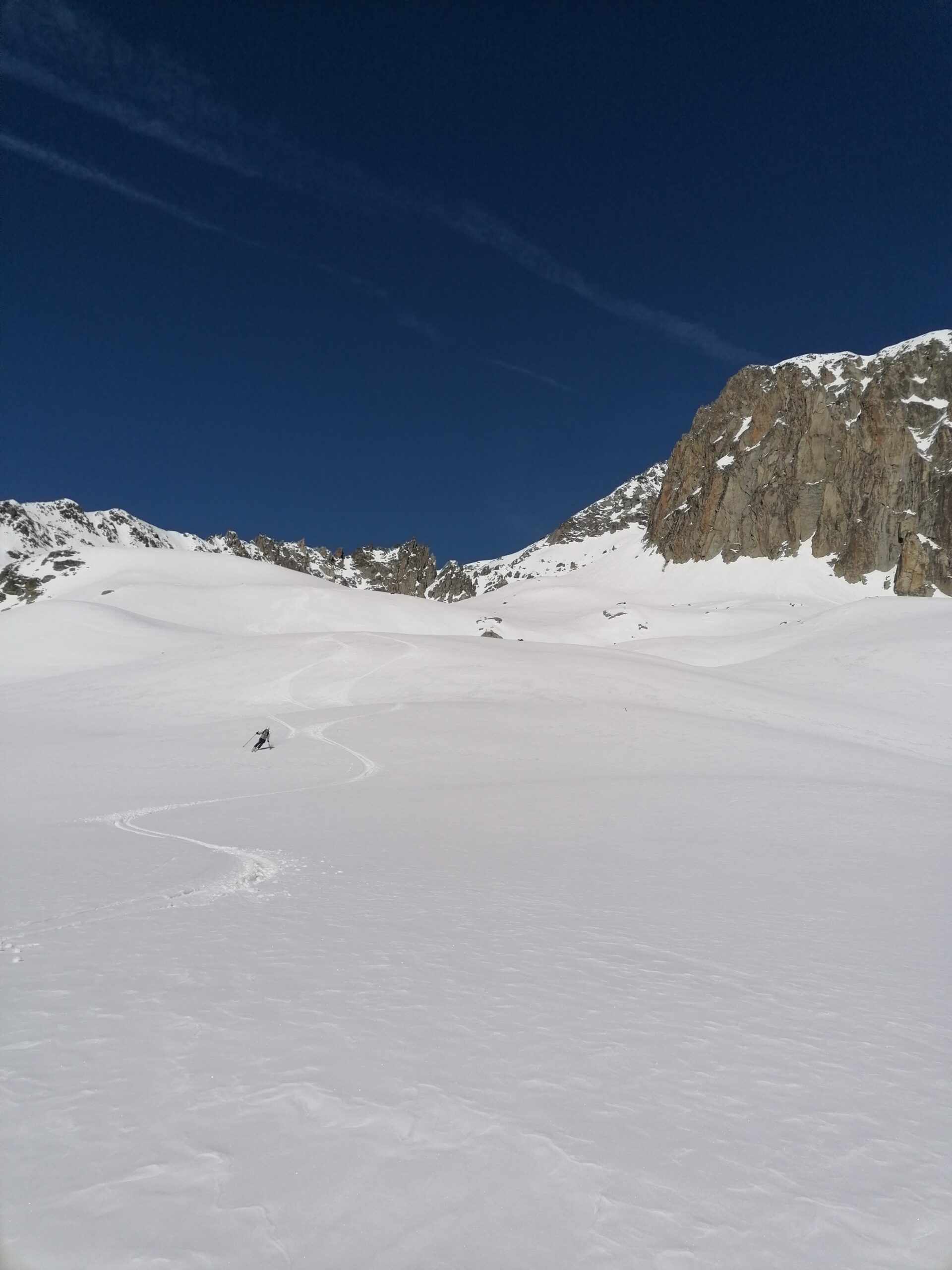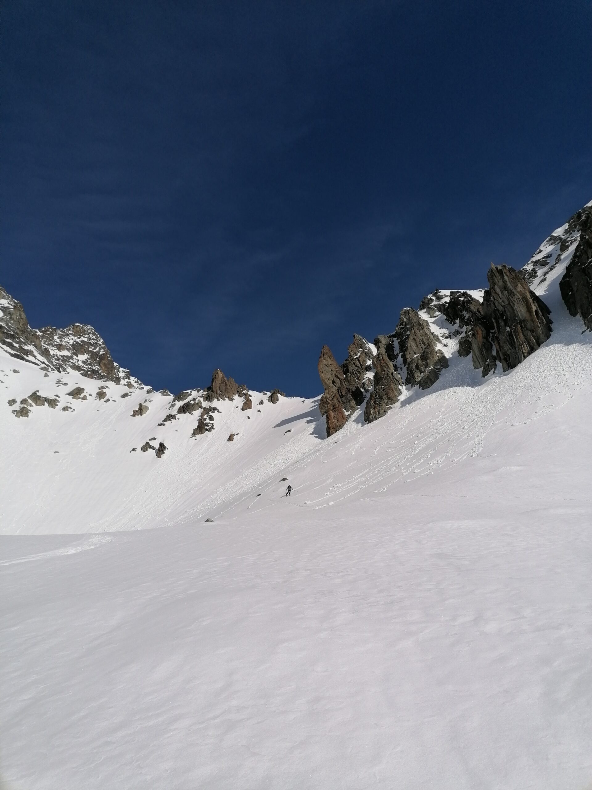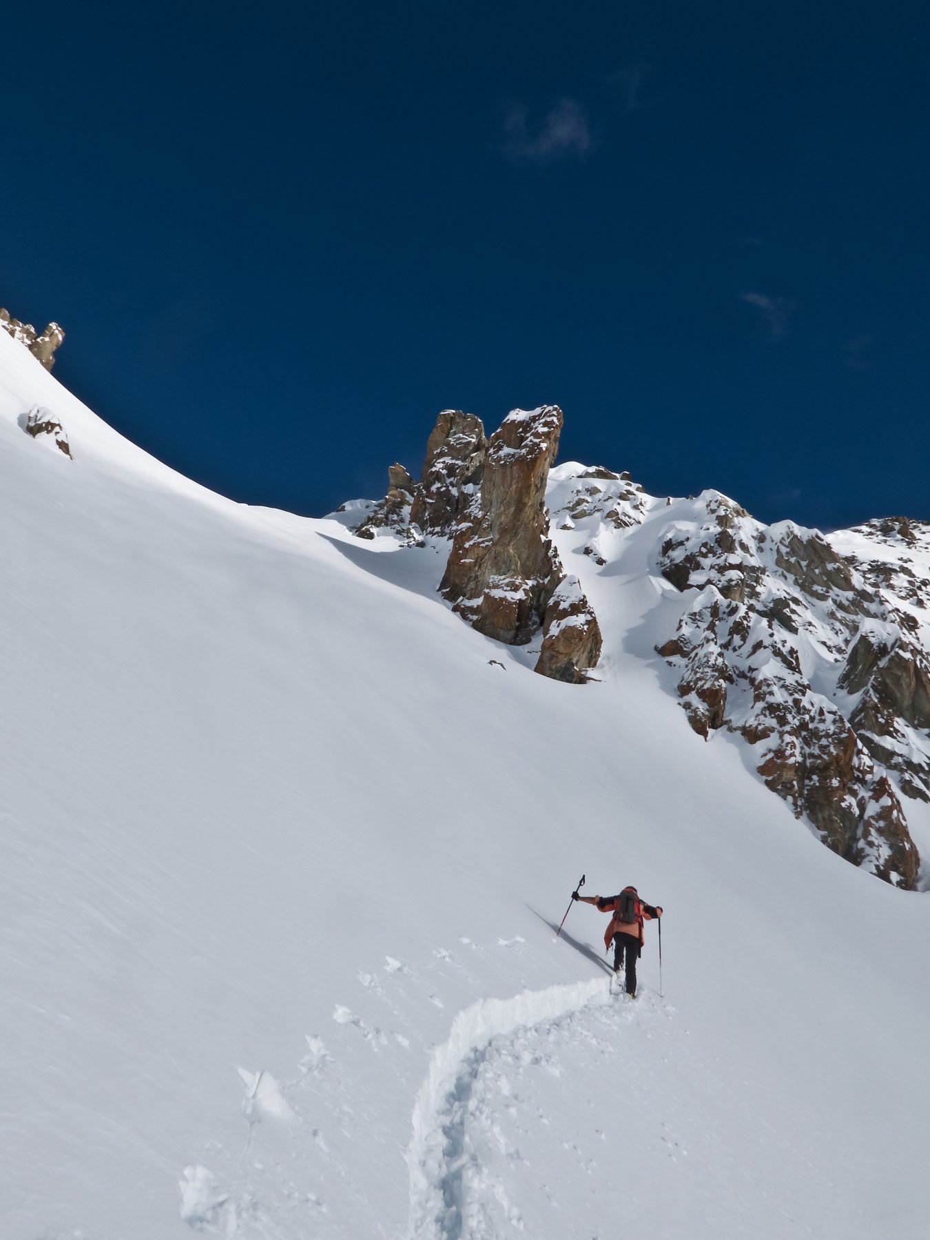 Si prosegue per dossi e pendii poco inclinati e aperti, puntando alla dorsale di sinistra che separa due valloni. Raggiunta la dorsale la si percorre oppure si risale il pendio di destra, per proseguire passando sotto le pareti sud della Tour de la Tsa.