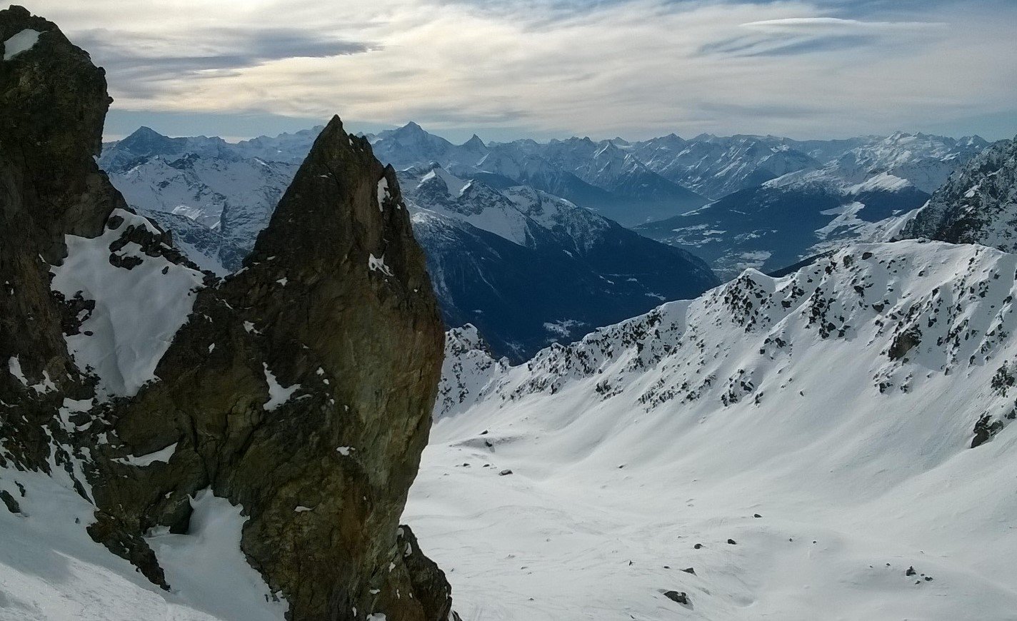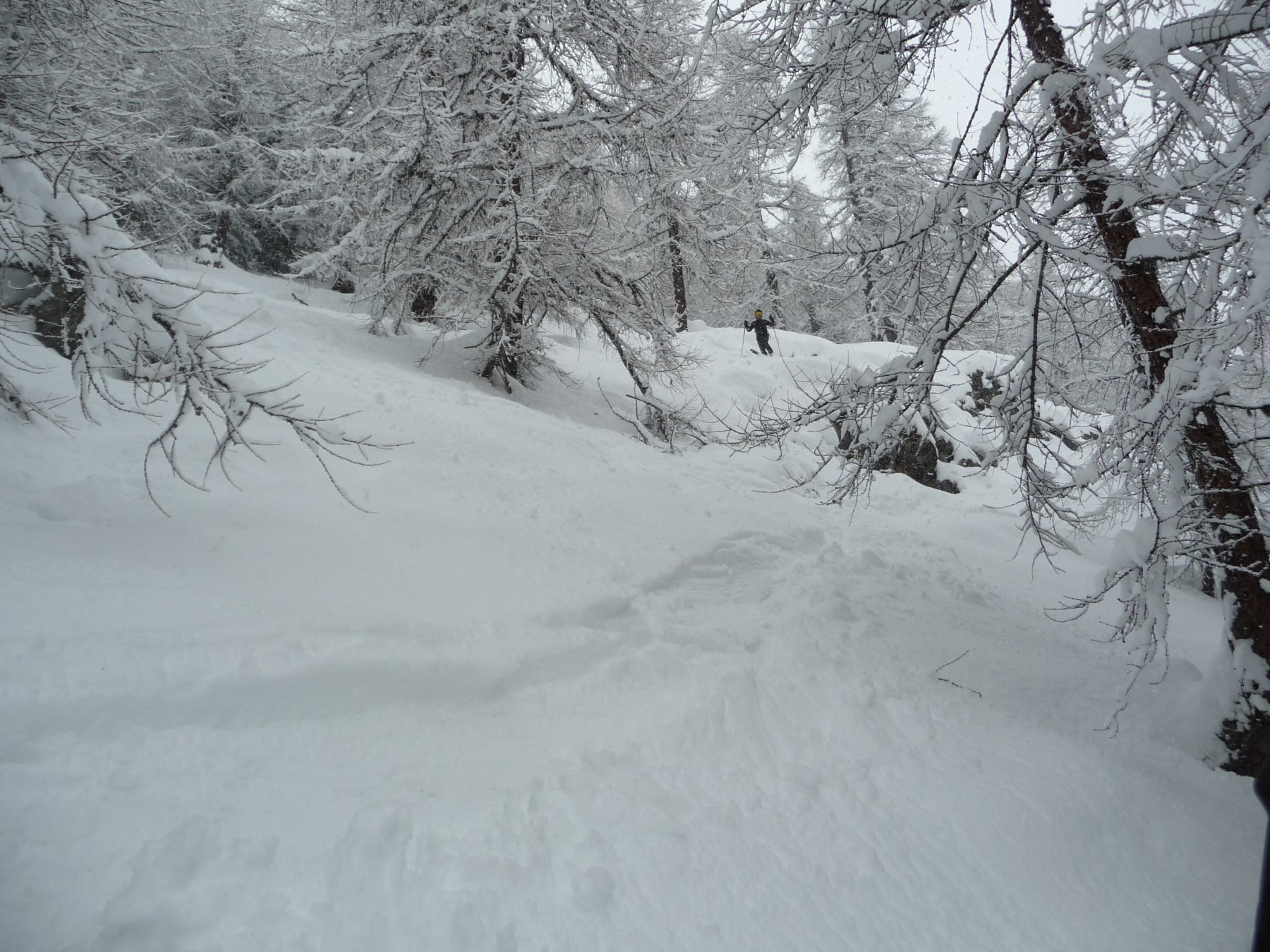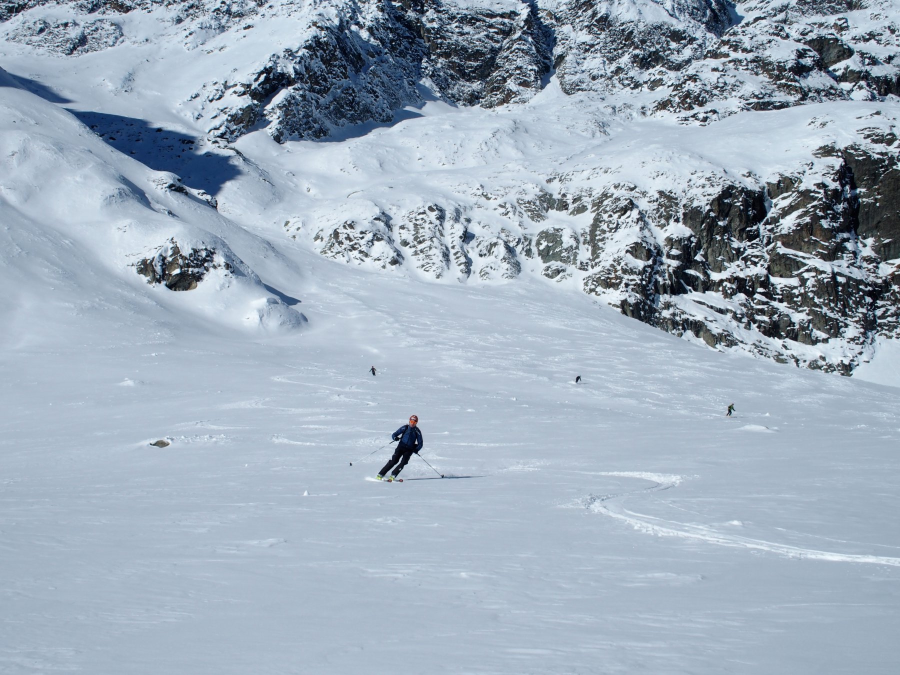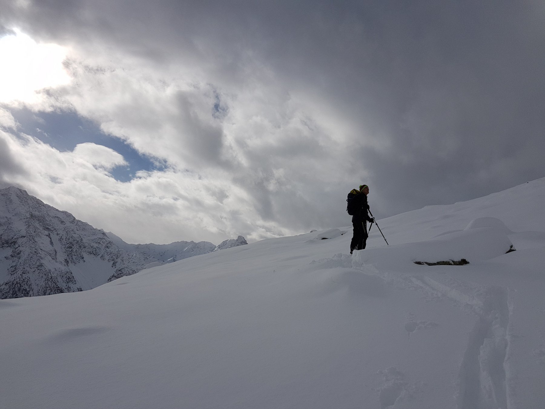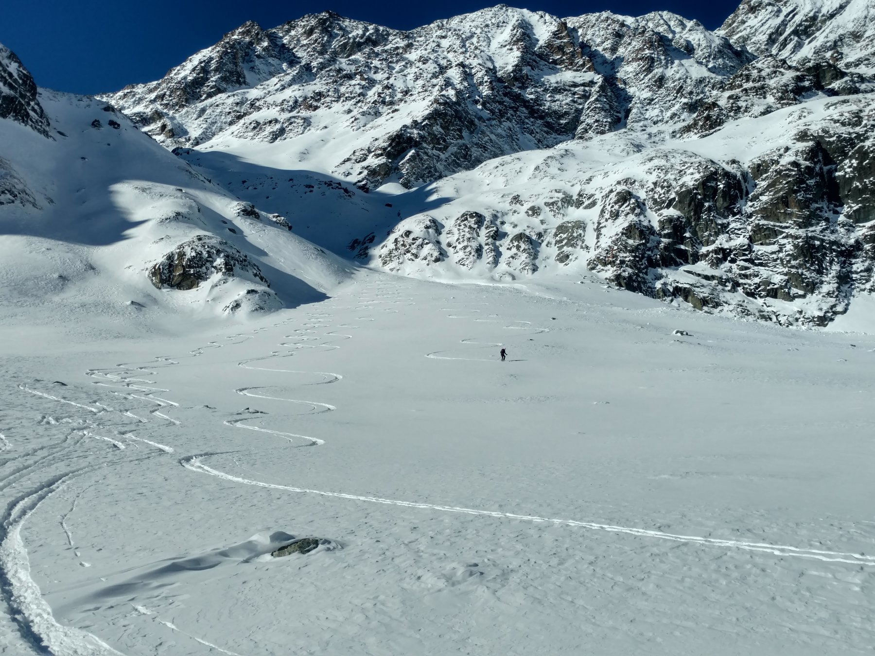 Si prosegue per dossi e pendii poco inclinati e aperti, puntando alla dorsale di sinistra che separa due valloni. Raggiunta la dorsale la si percorre oppure si risale il pendio di destra, per proseguire passando sotto le pareti sud della Tour de la Tsa.