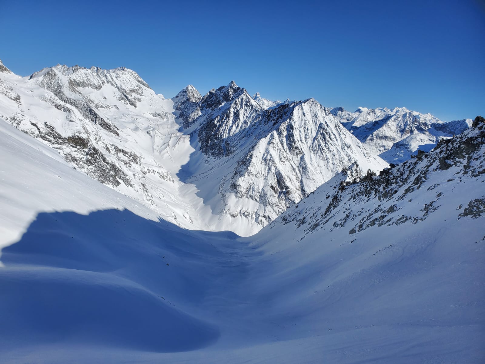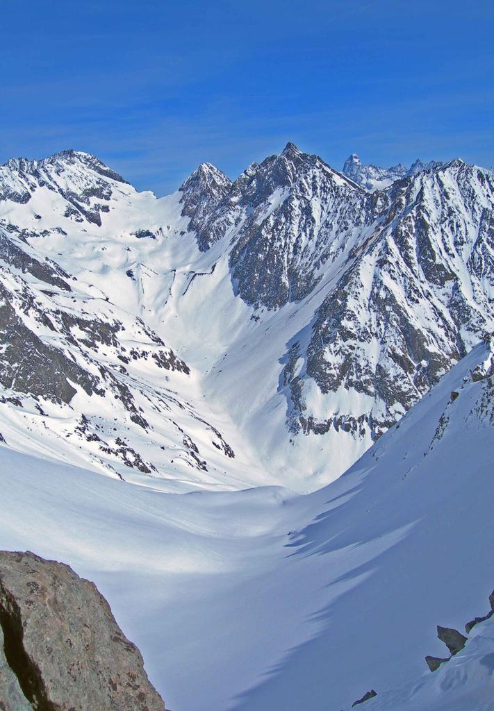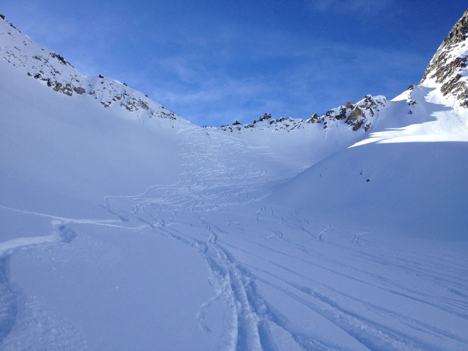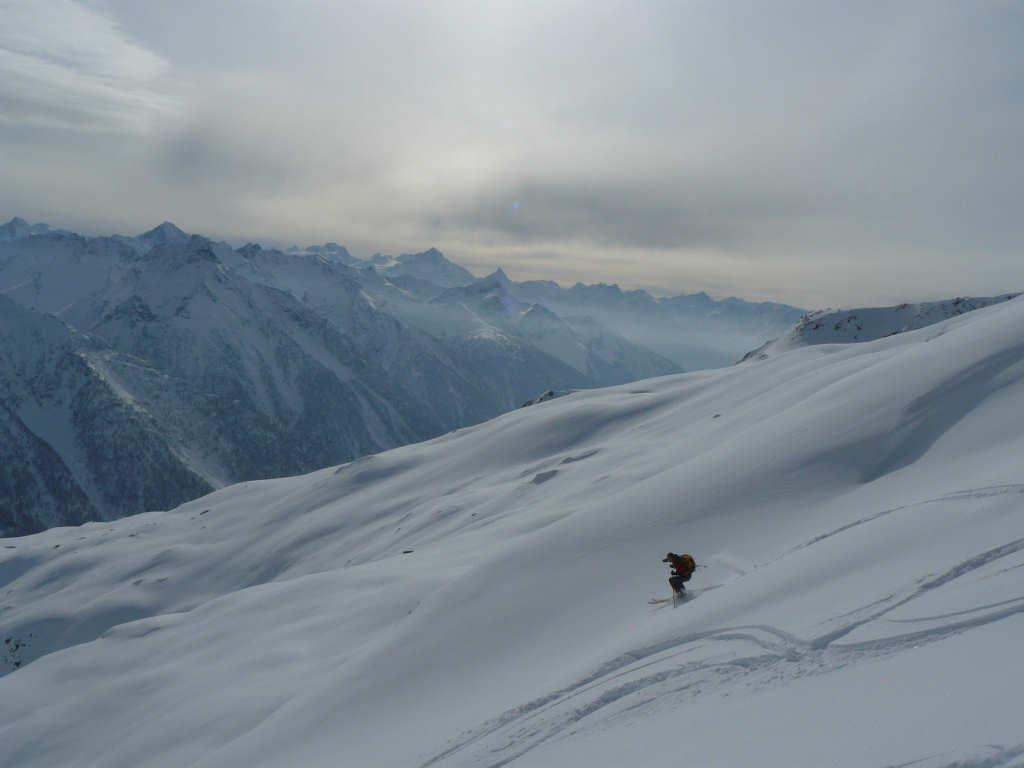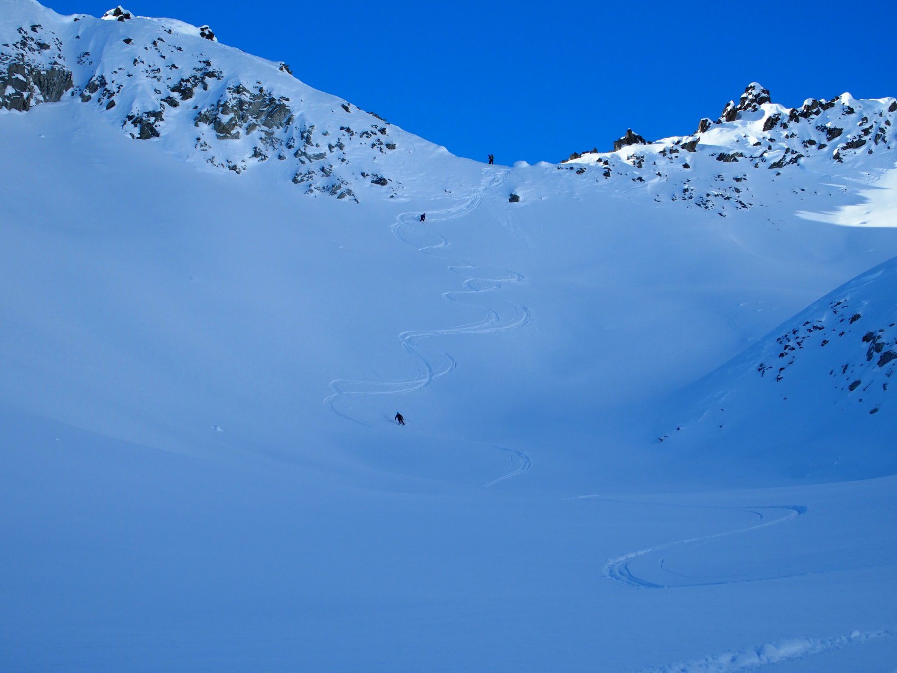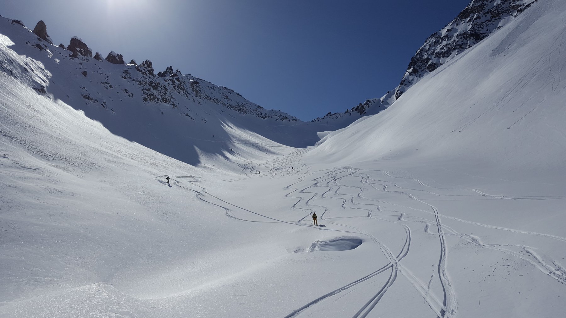 Si prosegue per dossi e pendii poco inclinati e aperti, puntando alla dorsale di sinistra che separa due valloni. Raggiunta la dorsale la si percorre oppure si risale il pendio di destra, per proseguire passando sotto le pareti sud della Tour de la Tsa.