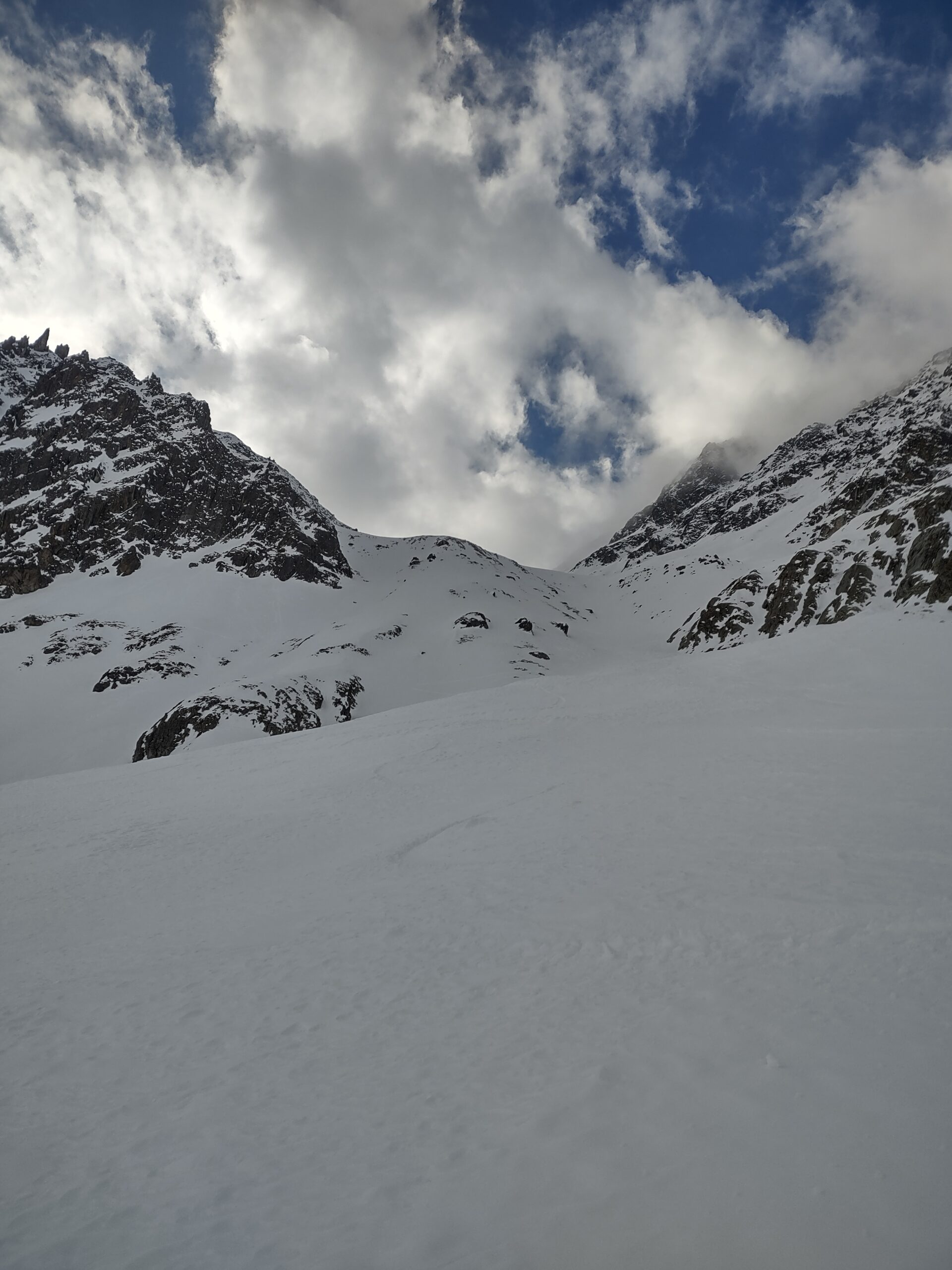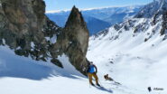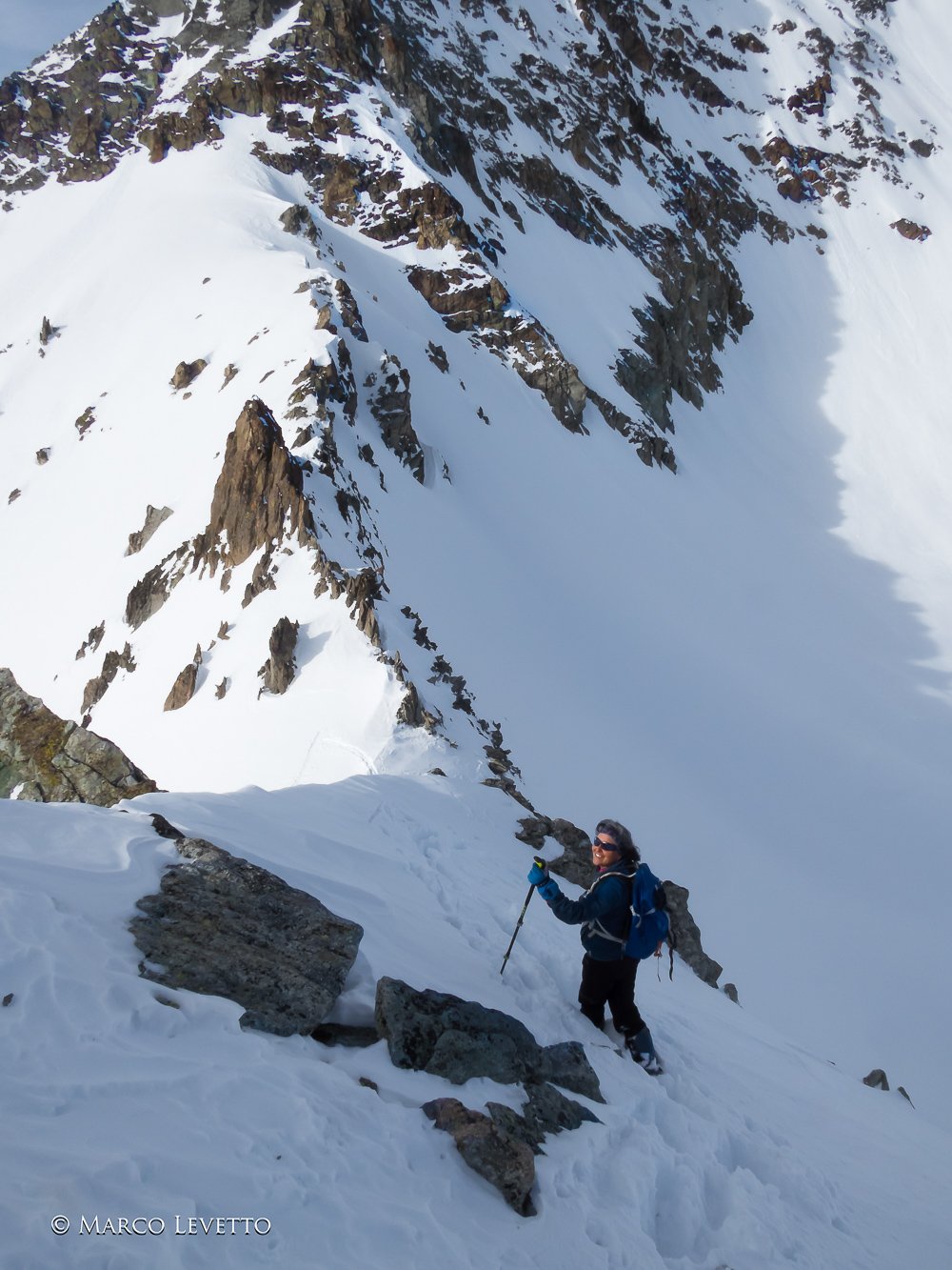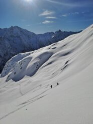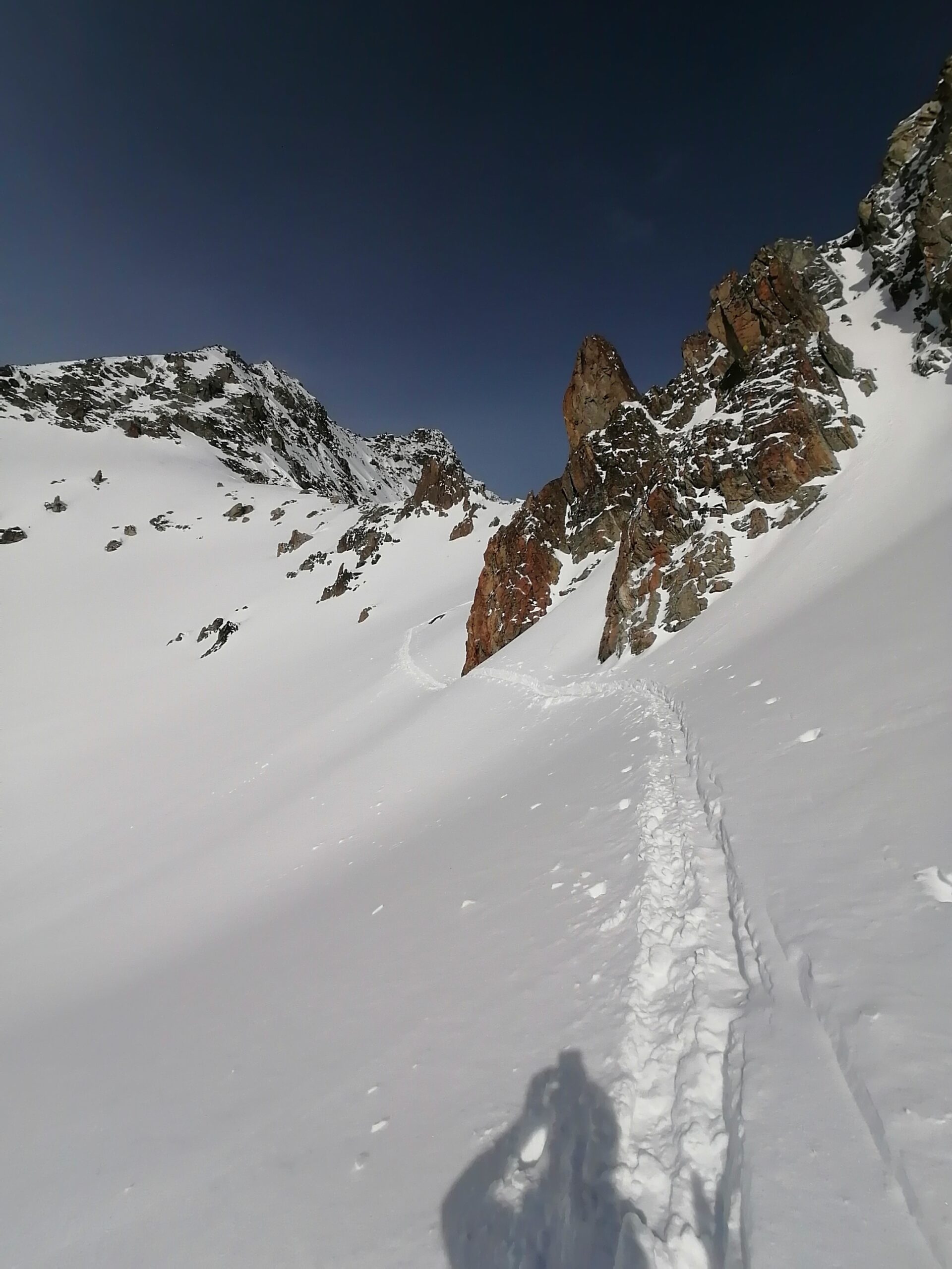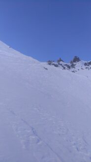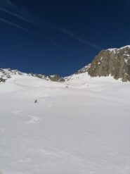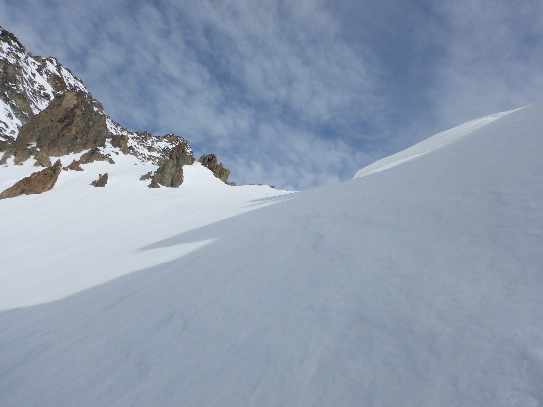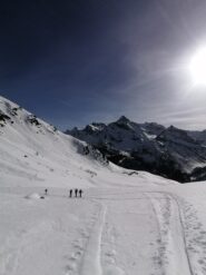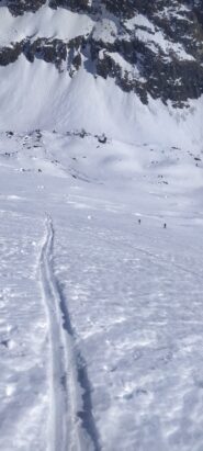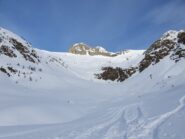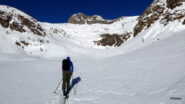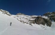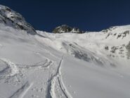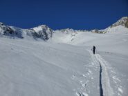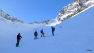 Superando alcuni dolci avvallamenti, fino ad arrivare alla base del ripido pendio di salita al Colle de la Tsa 2997 m che si affronta con qualche diagonale.