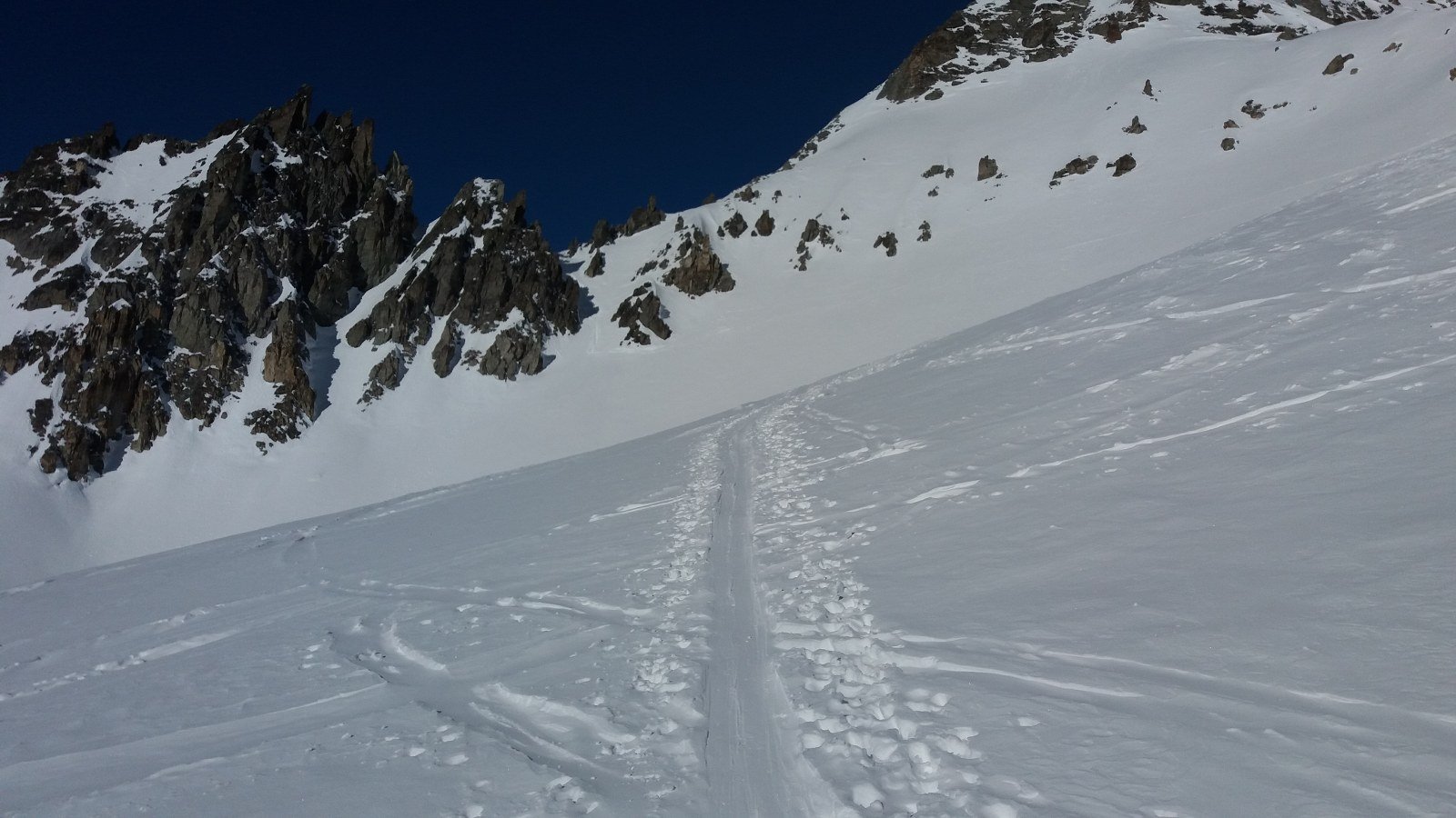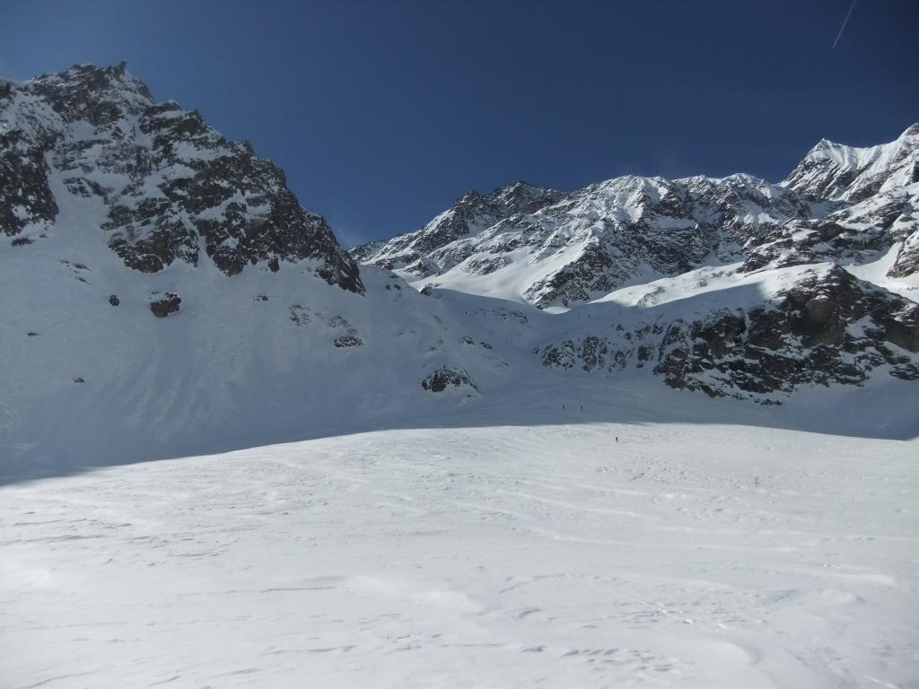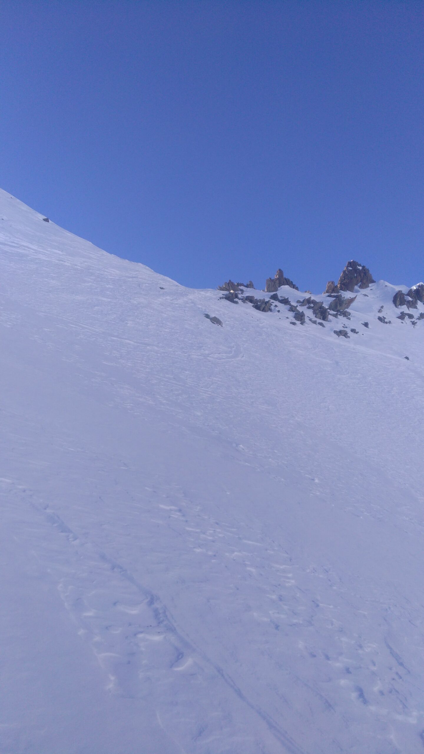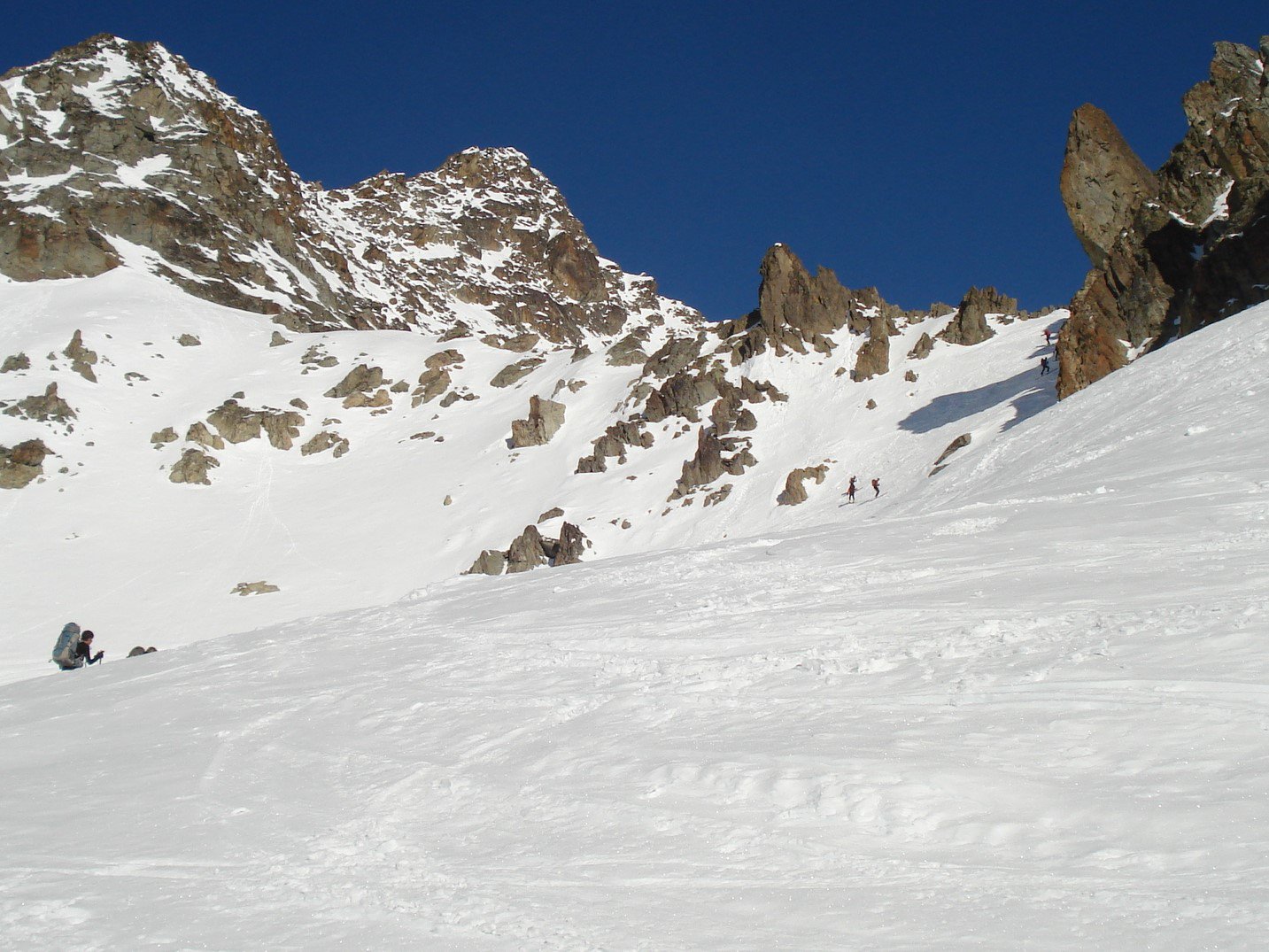 Superando alcuni dolci avvallamenti, fino ad arrivare alla base del ripido pendio di salita al Colle de la Tsa 2997 m che si affronta con qualche diagonale.