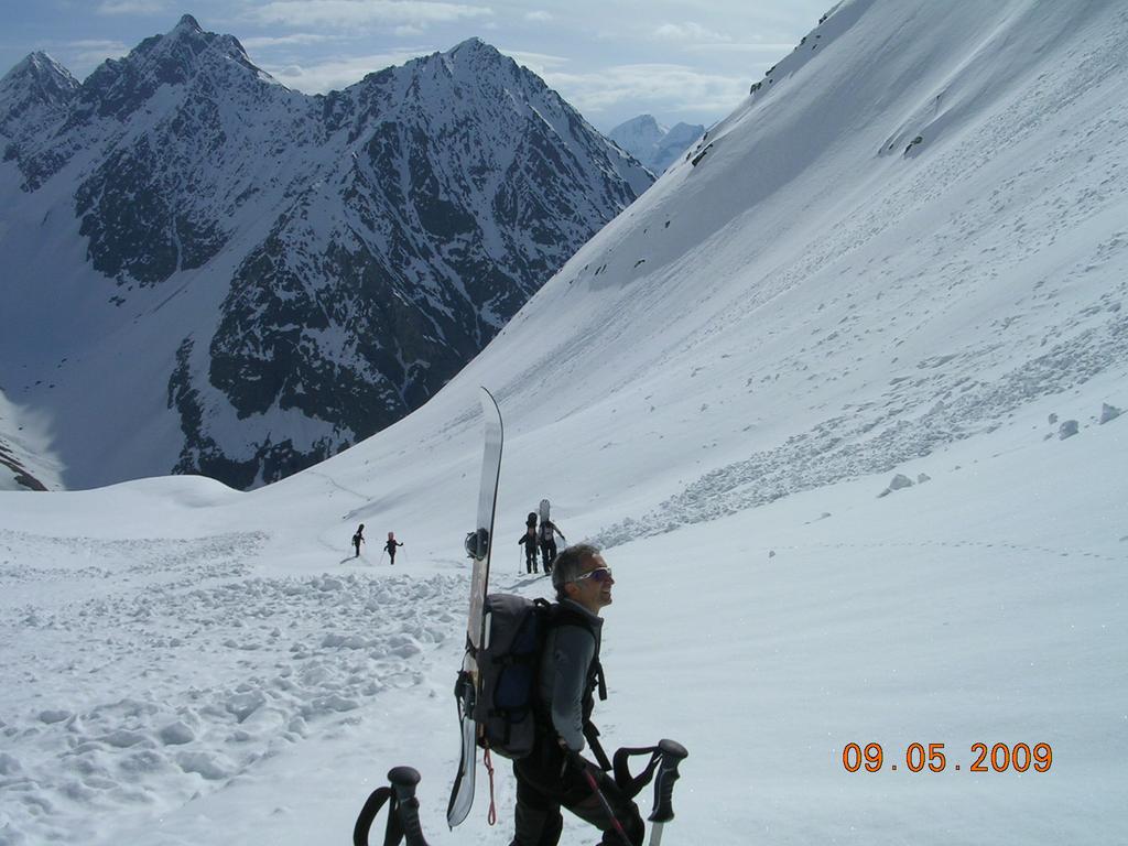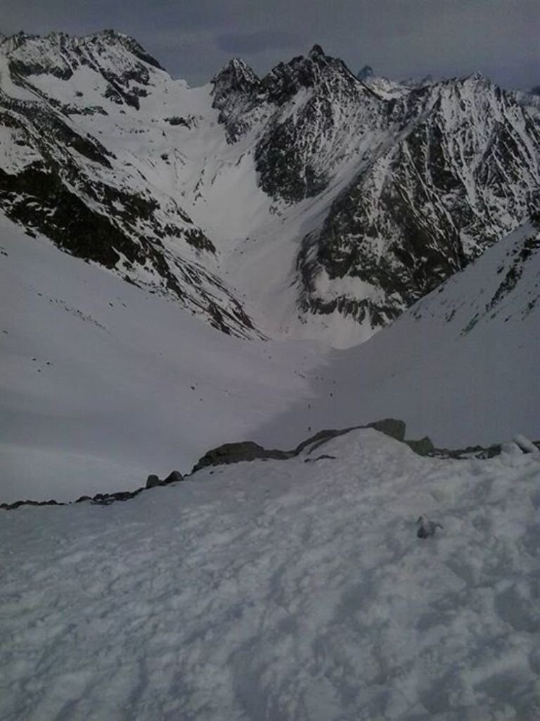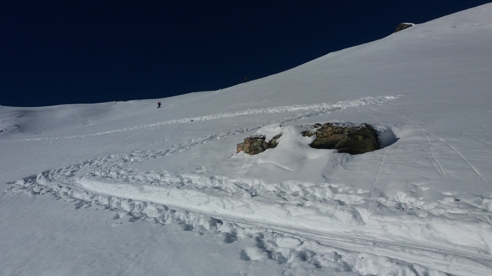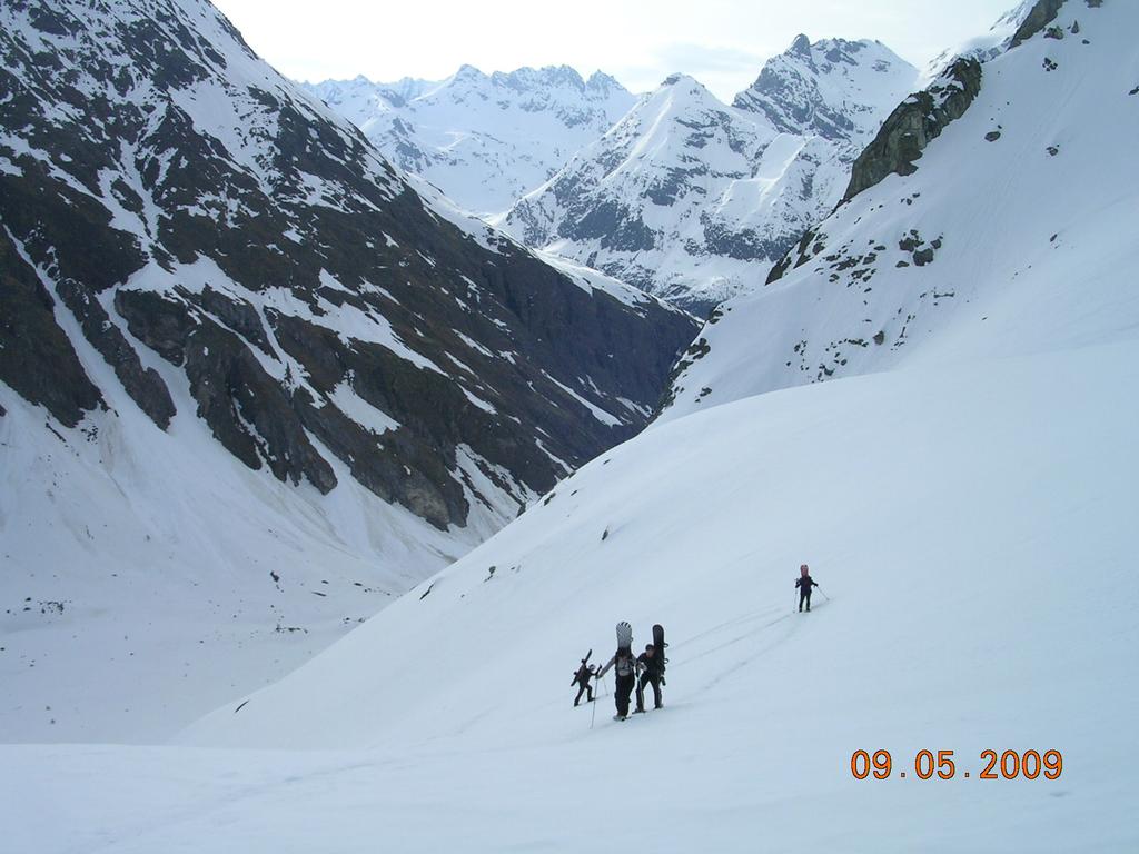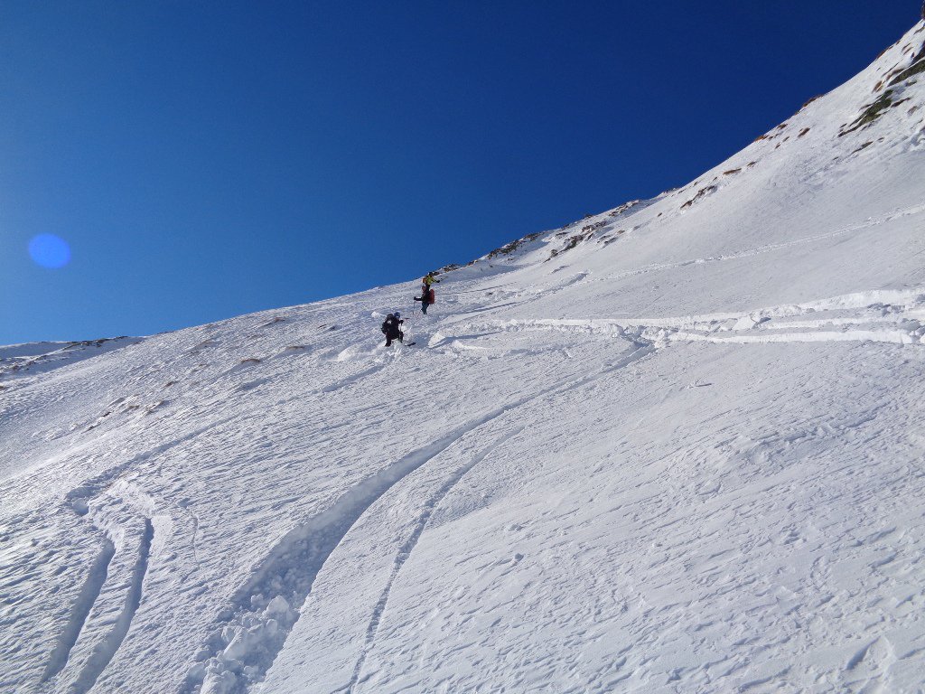 Superando alcuni dolci avvallamenti, fino ad arrivare alla base del ripido pendio di salita al Colle de la Tsa 2997 m che si affronta con qualche diagonale.