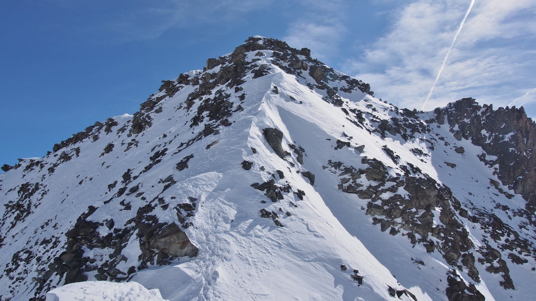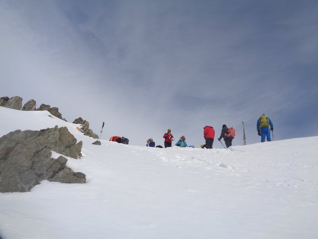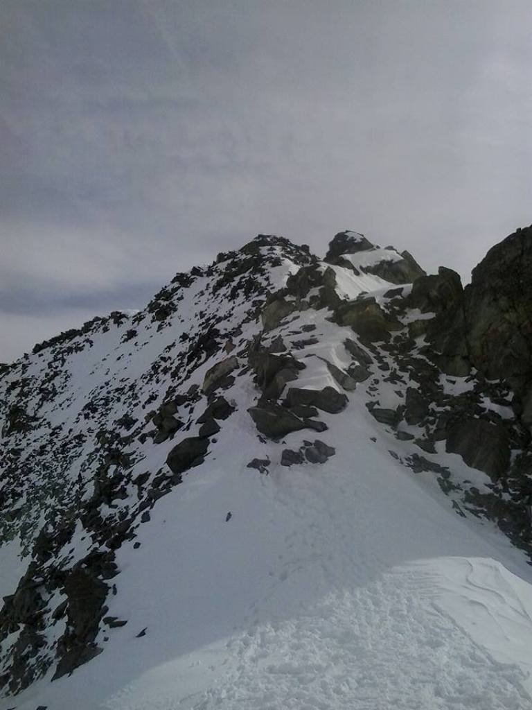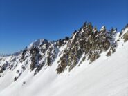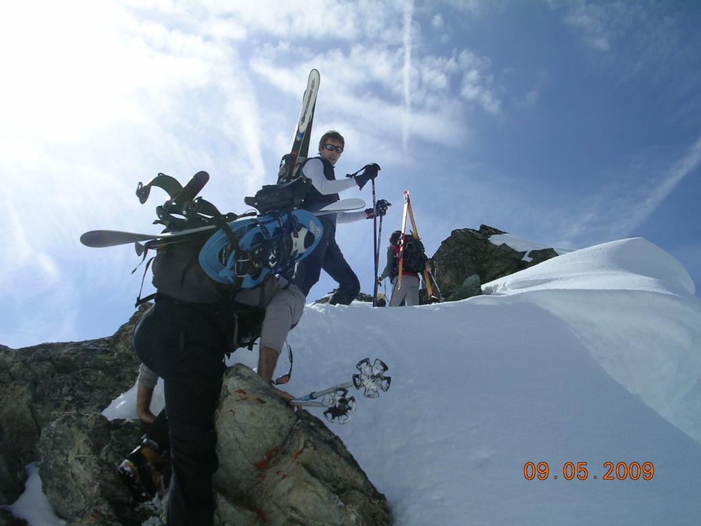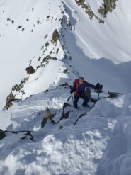 Al colle si lasciano gli sci, ed eventualmente con piccozza e ramponi si può salire in cima percorrendo la cresta ovest, non particolarmente difficile o esposta. Si scavalcano alcune facili roccette e brevi pendii nevosi ripidi fino alle roccette di vetta.