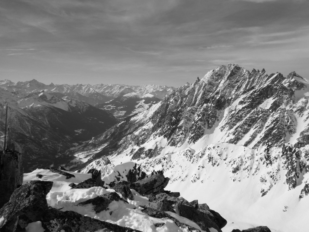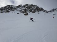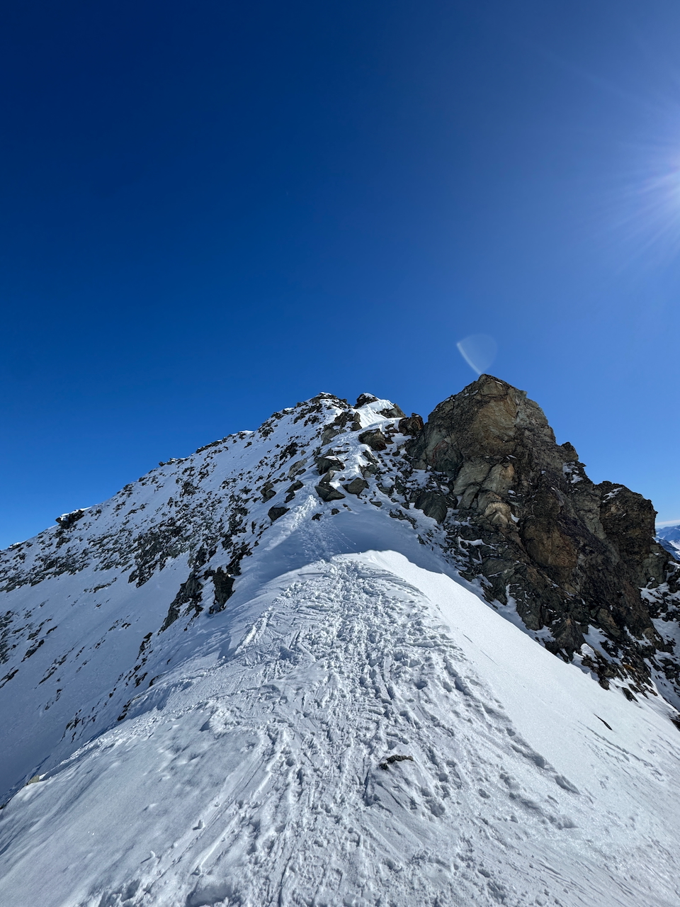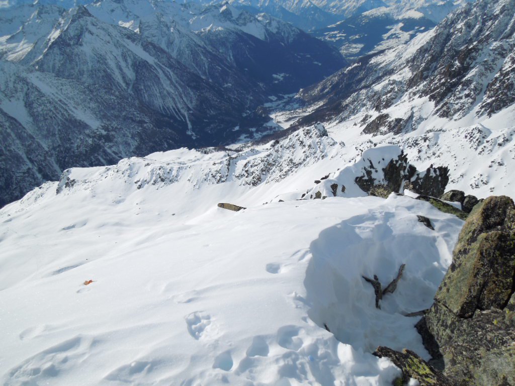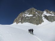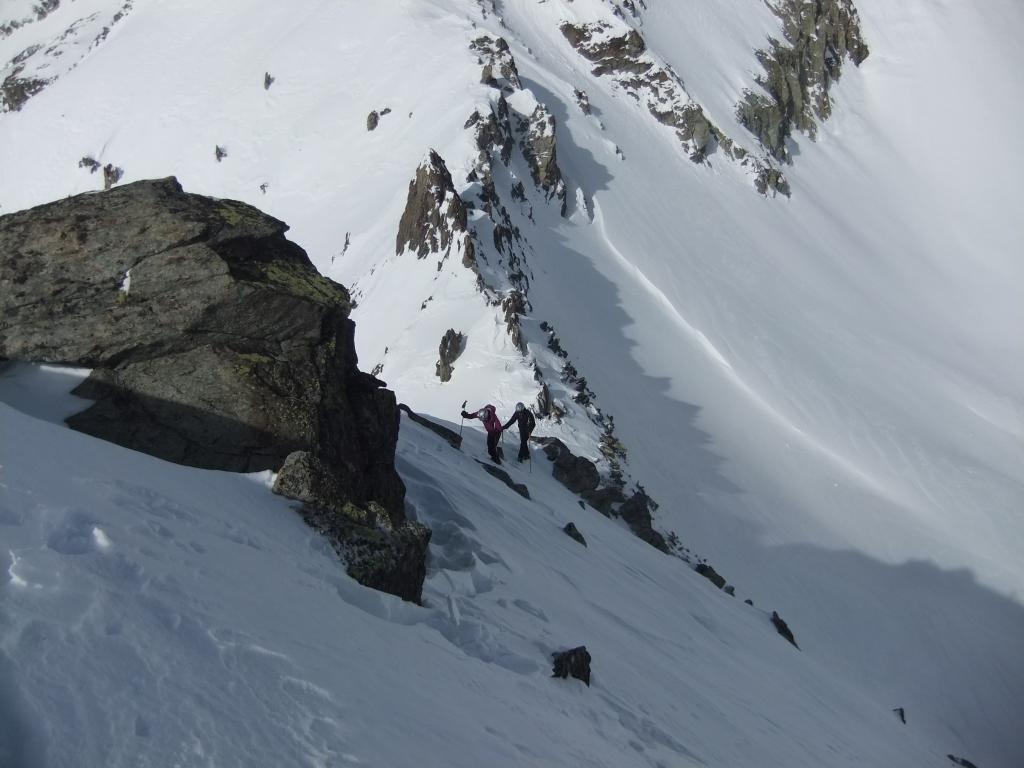 Al colle si lasciano gli sci, ed eventualmente con piccozza e ramponi si può salire in cima percorrendo la cresta ovest, non particolarmente difficile o esposta. Si scavalcano alcune facili roccette e brevi pendii nevosi ripidi fino alle roccette di vetta.