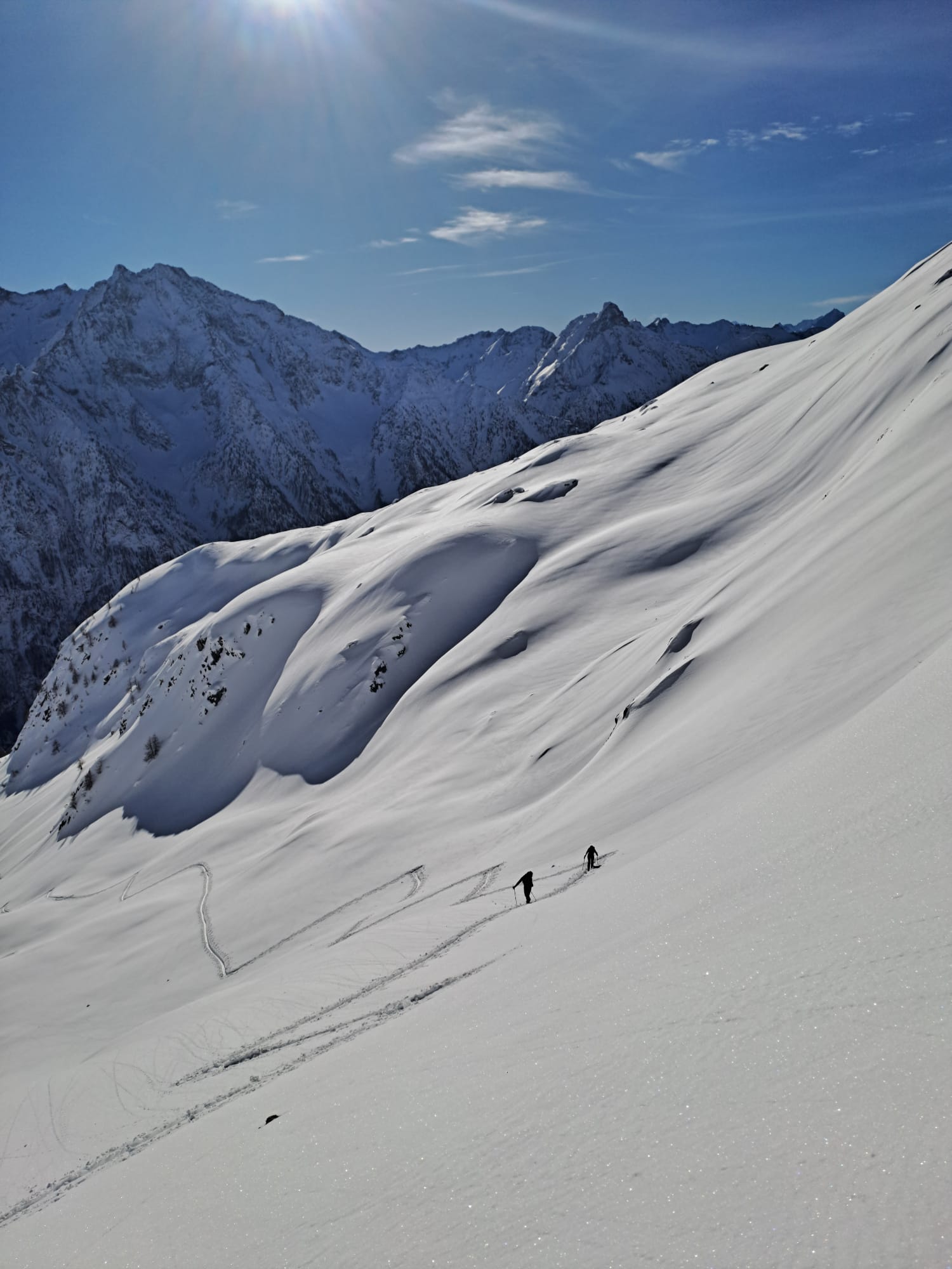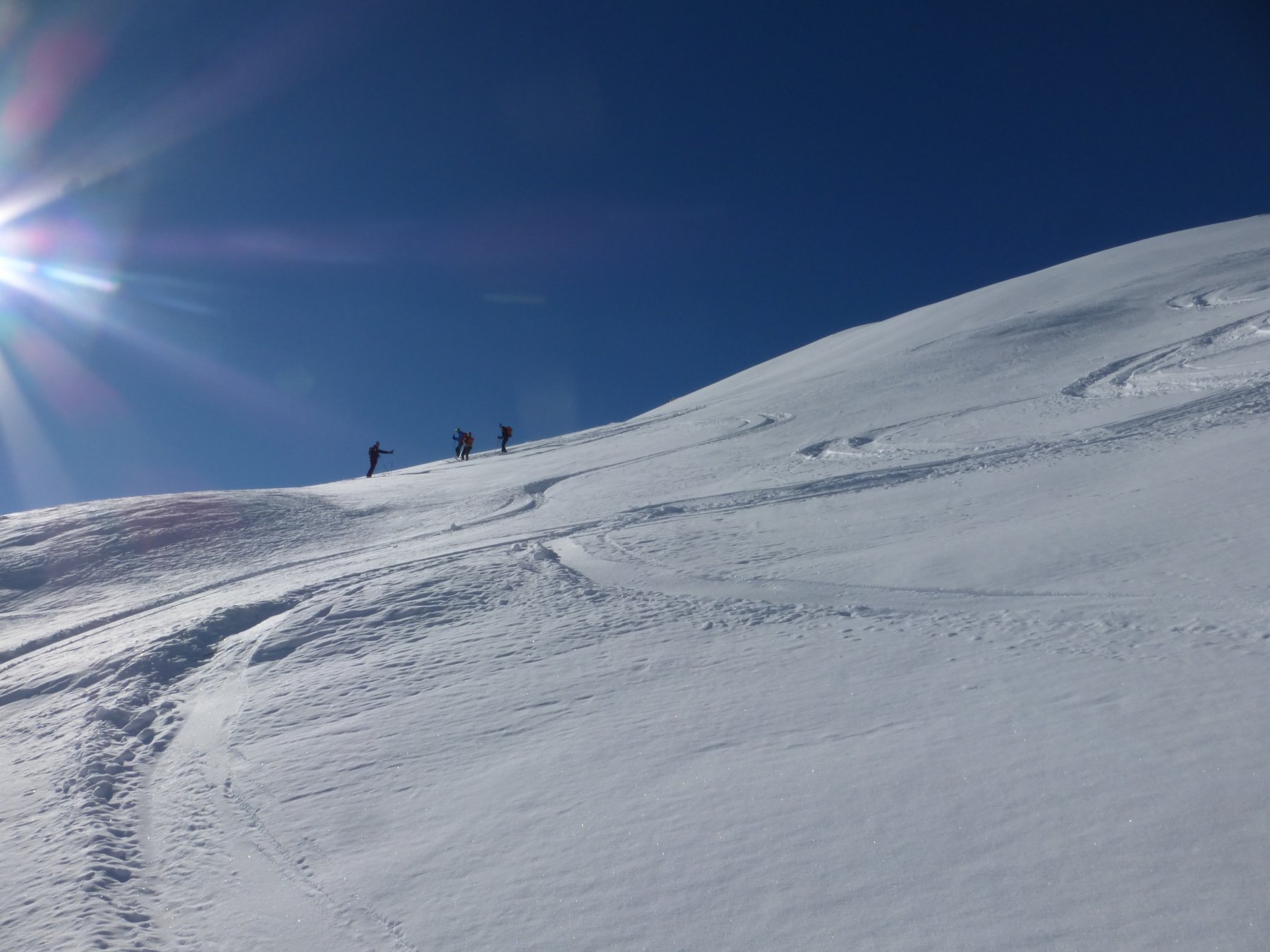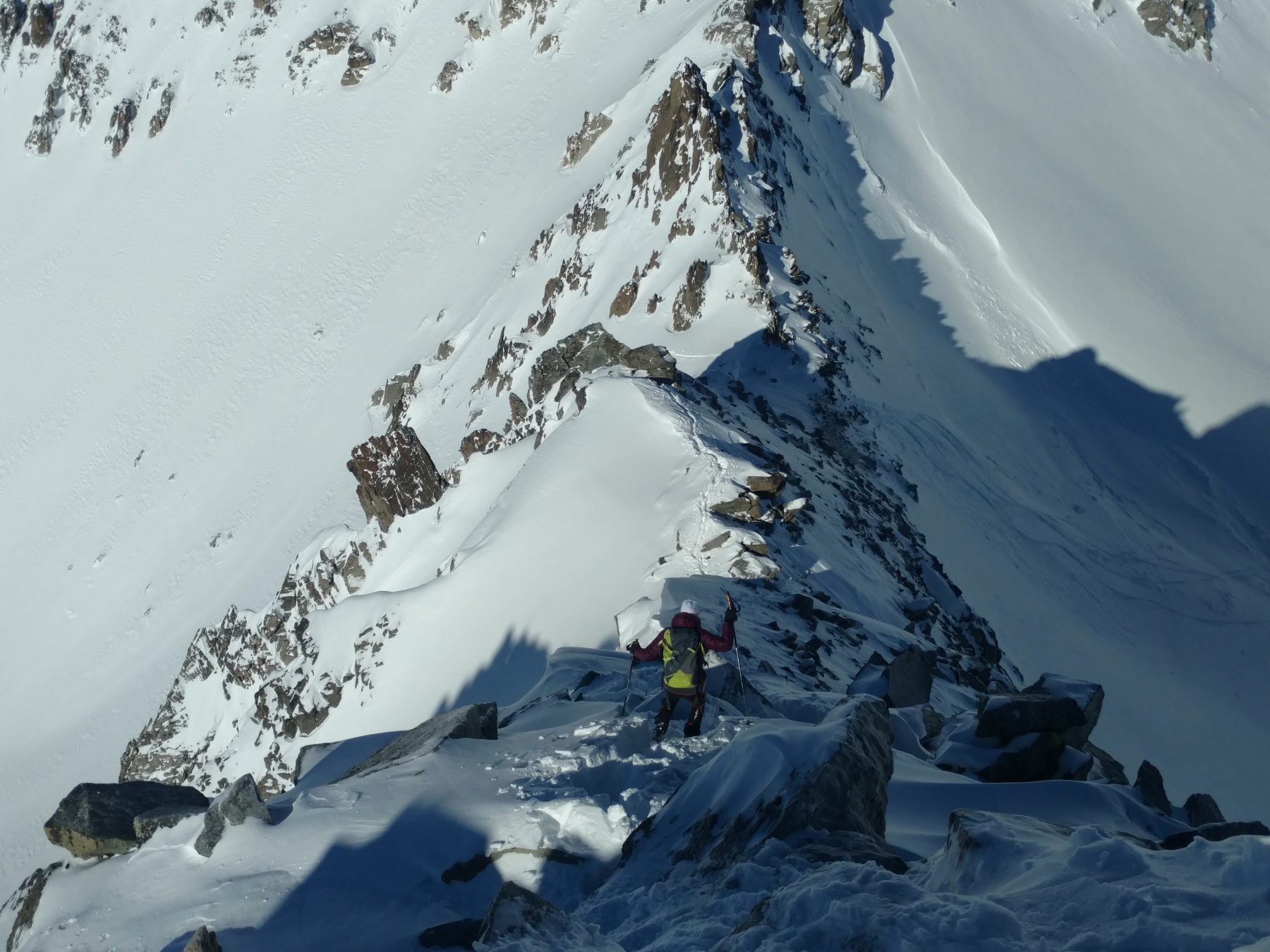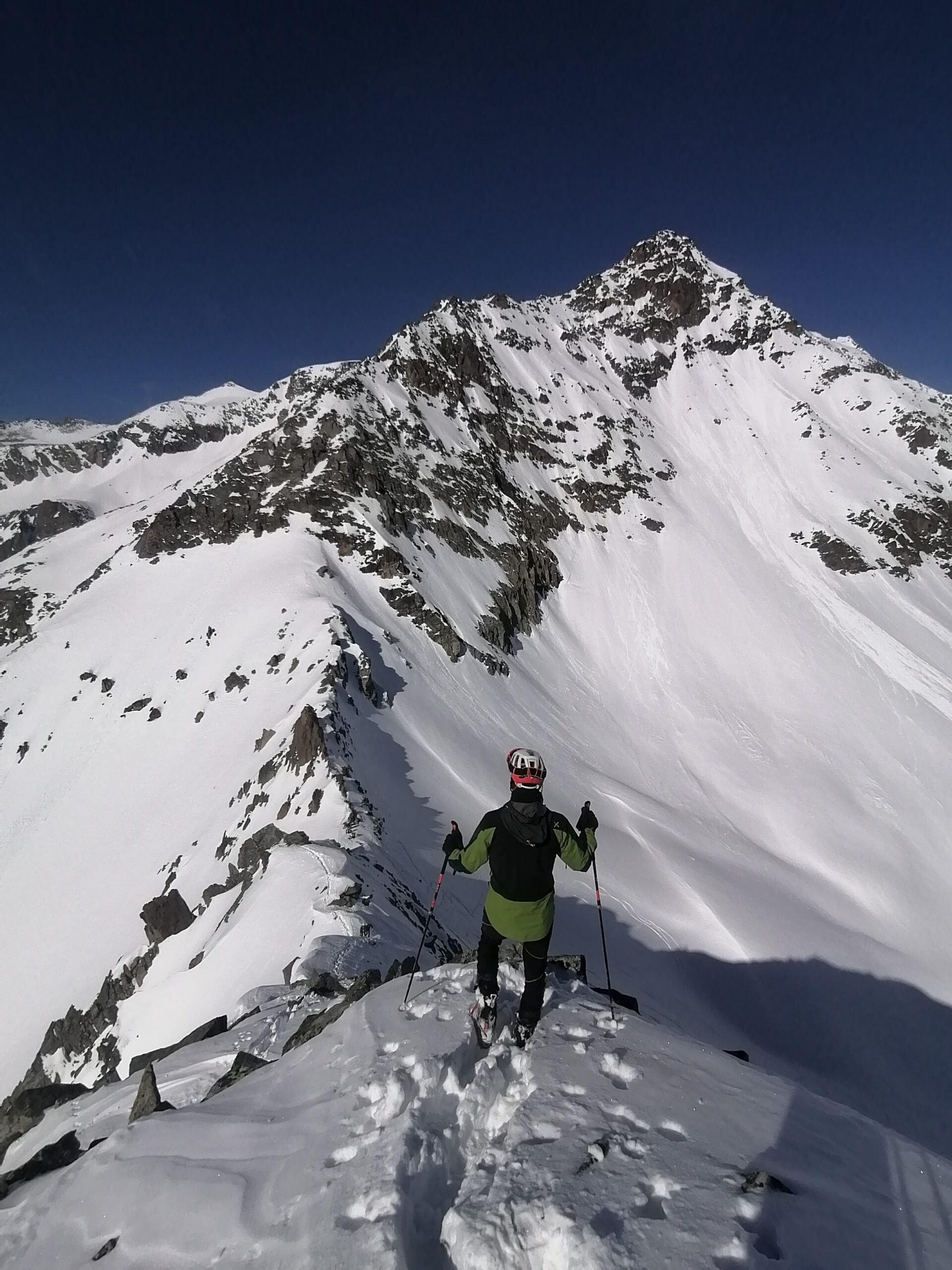 La parte finale del percorso, con la salita della cresta ovest per raggiungere la cima regala un po’ di adrenalina in più (tratto alpinistico valutabile F). Ma ci si può tranquillamente fermare al colle per prepararsi a godere della discesa.