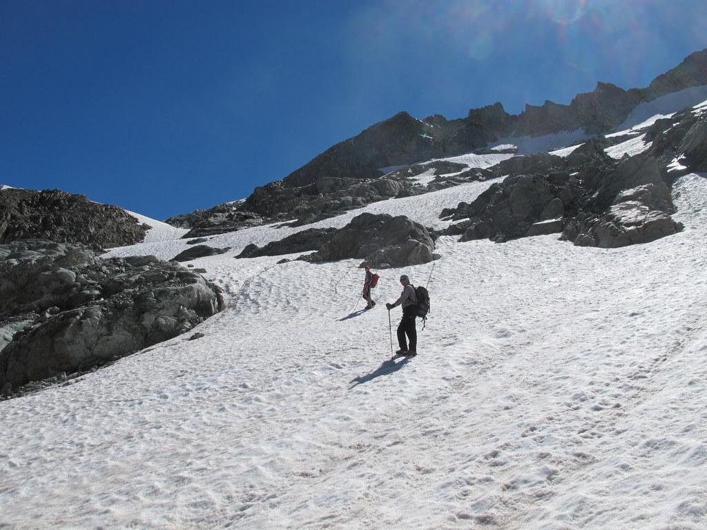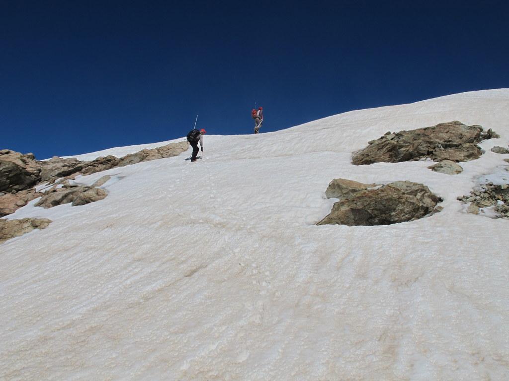 Il Berutto assegna a questa ascensione il grado di difficoltà PD perchè il ghiacciaio, pur essendo facile e sicuro, è in alcuni punti ripido e potrebbe non essere ricoperto da neve a stagione avanzata. A noi (parlo anche per i miei compagni di gita, più esperti di me in campo alpinistico) è parso sovrastimato.