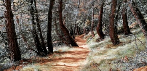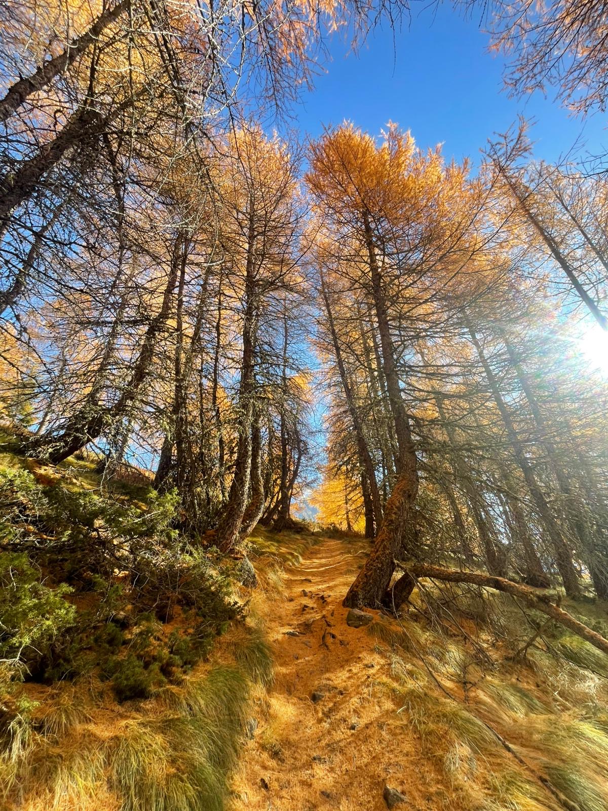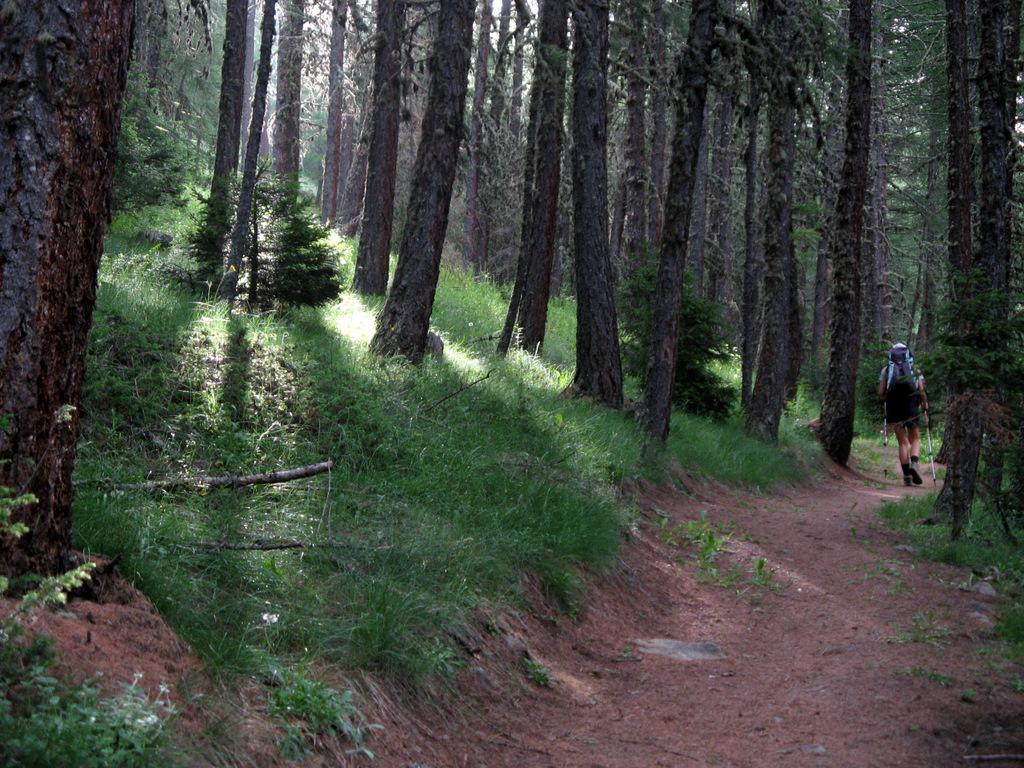 Giunti ad una cappellina, lasciare la strada e proseguire per la carrareccia che sale lungo il torrente. Con un breve tratto finale di sentiero, questa giunge ad una casa. Dietro la casa, un altro sentiero senza segnavia si inoltra nel bosco di pini in direzione NO.