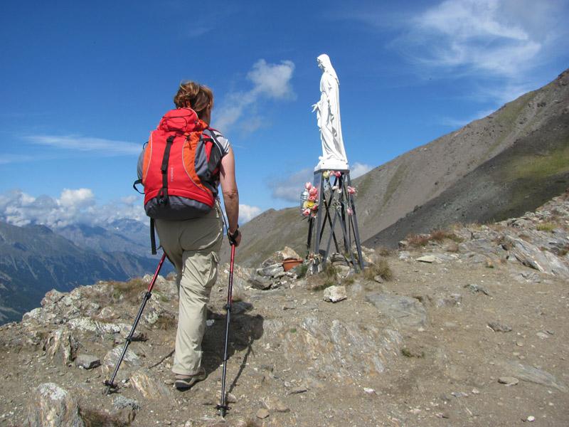 Giornata variabile ma nel complesso, in questa pazza estate, buona. Dal parcheggio di Gimillian siamo saliti seguendo il sentiero 3/A (chiuso nei giorni feriali per taglio piante). Superato il bosco siamo saliti a larghe svolte su pascoli soleggiati. Dopo aver superato un rudere, abbiamo affrontato l’ultimo ripido pendio e raggiunto la sommità dov’è posta la statua della Madonnina bianca circondata da abbondanti fioriture di stelle alpine. Stupendo il colpo d’occhio sulla catena del Gran Paradiso e sul vallone di Grauson.