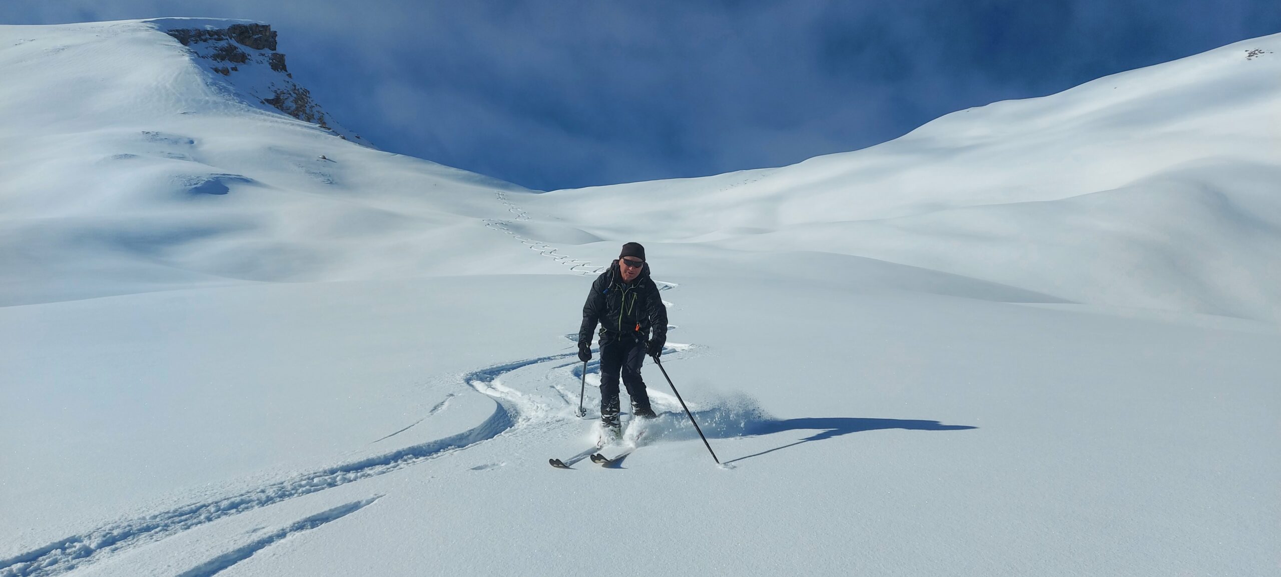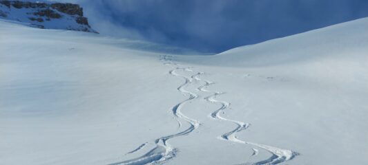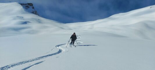 Bellissima discesa dal carrusapass2600 fino Wergenstein …polvere polvere .più in alto la neve è ventata .