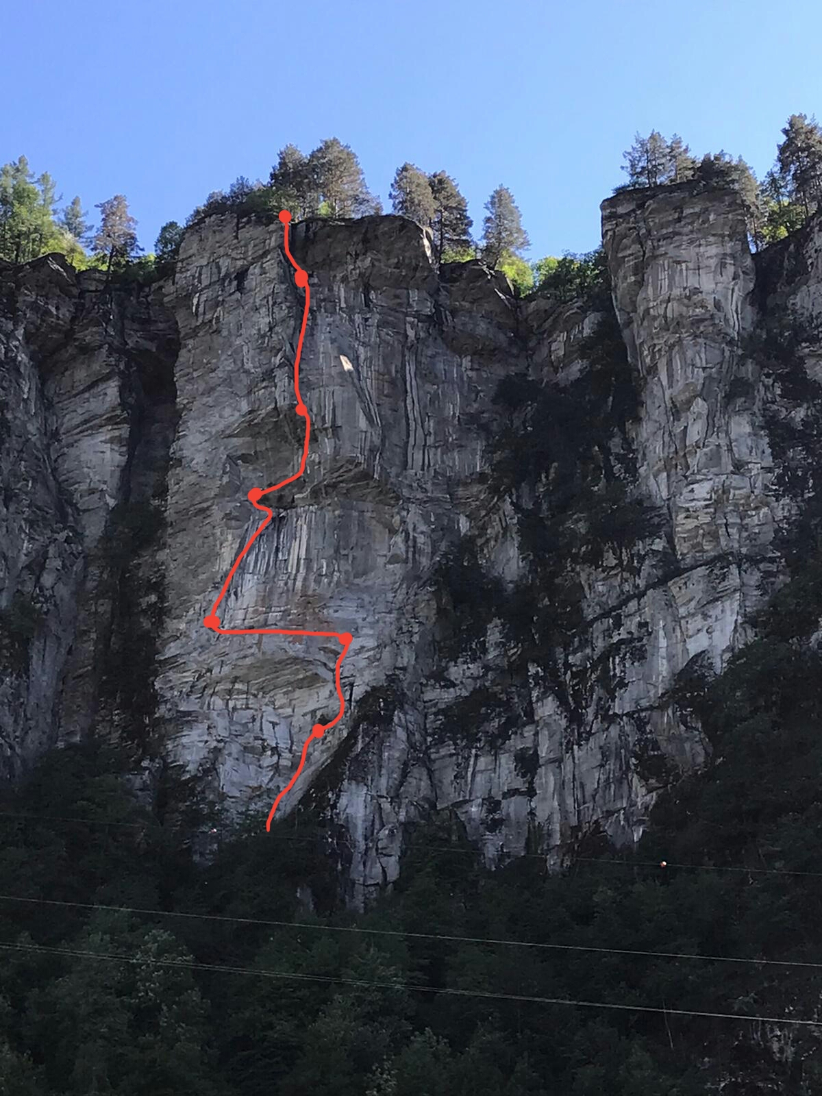 - L7: ancora nel diedro liscio con passo duro per superare un tettino. Sostare su albero sul pianoro sommitale. 6c+ oppure 6a/A1