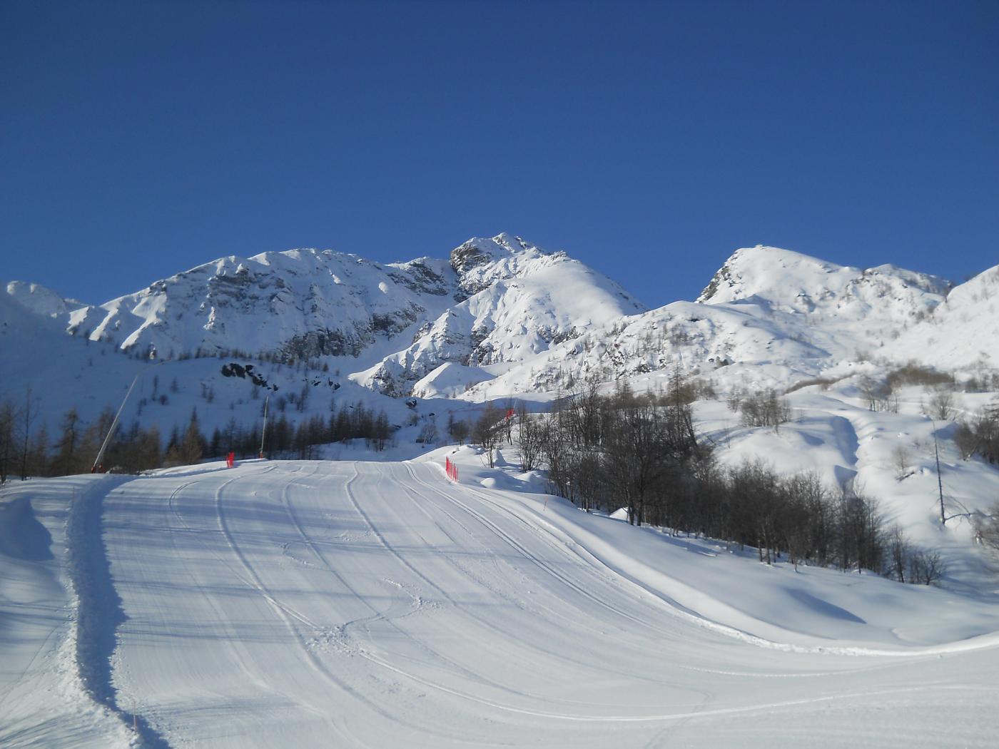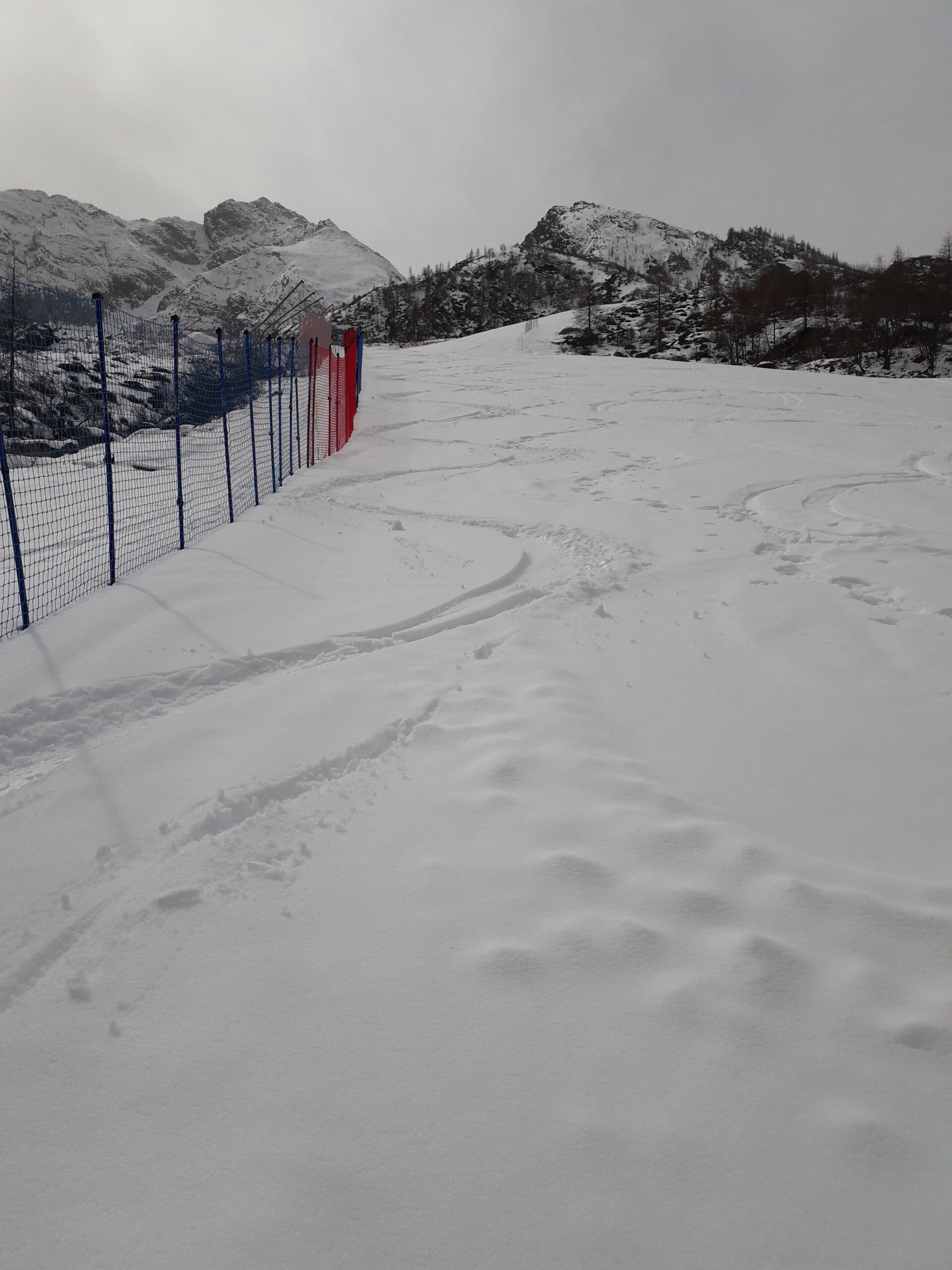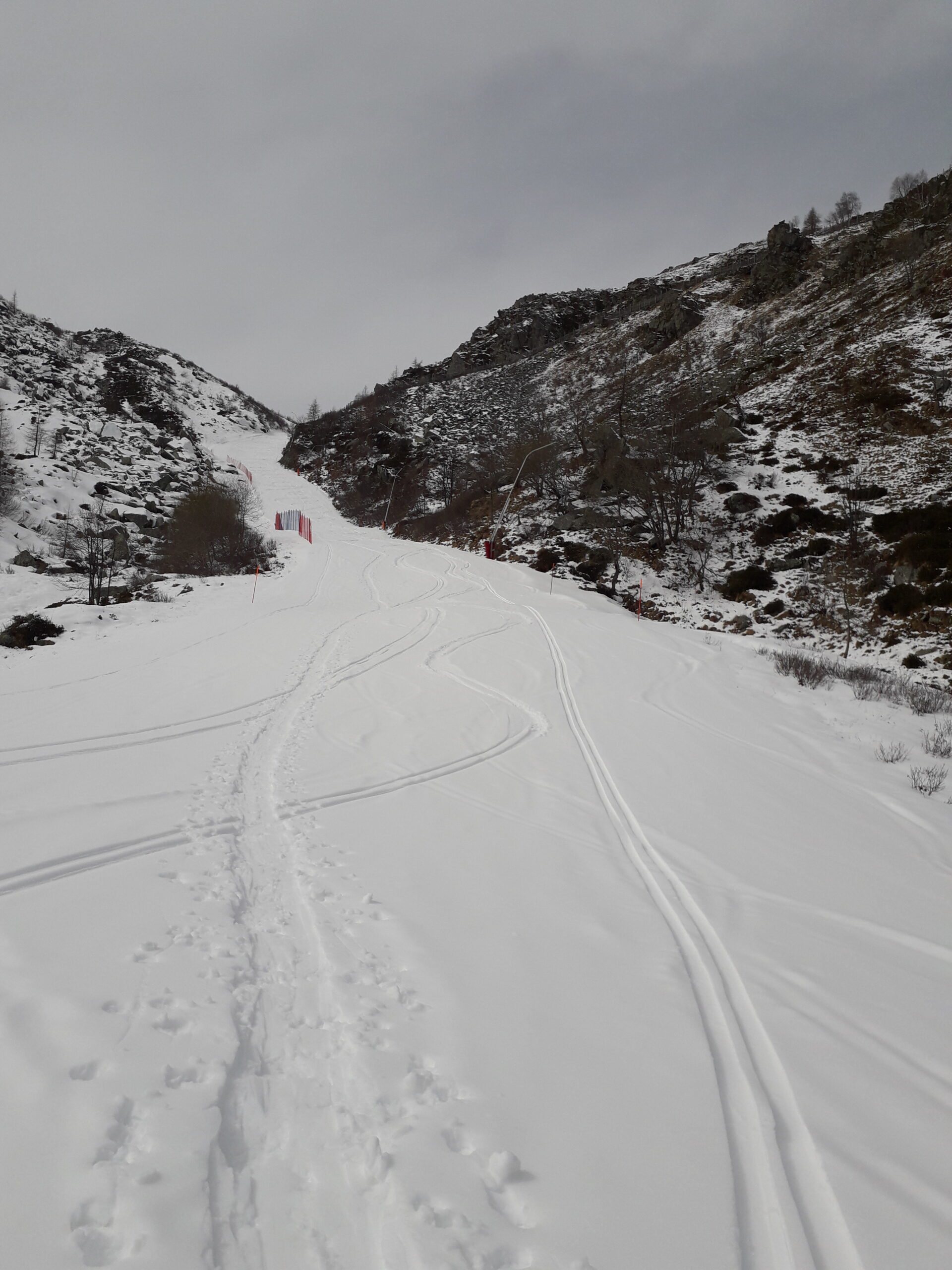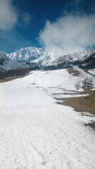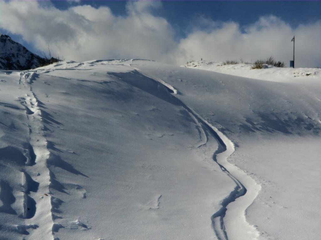 Discesa: Per la pista rossa, tenendo presente che questa finisce 300m più ad est del parcheggio e quindi bisogna risalire una ventina di metri o mendicare un passaggio allo skilift. Oppure per la pista che si attraversa lungo la salita se è praticabile.