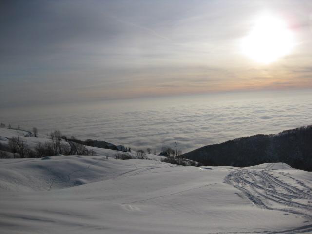 Bellissima gita sopra spessa coltre nebbiosa che copriva tutto il biellese. All’inizio della risalita bisogna cercare le lingue di neve che incomincia a scarseggiare, ma ben presto questo problema sparisce. Essendo un versante sud la neve è tutta crosta non portante, quindi il primo tratto di discesa è terribile, ma giunti alla cascina “la Lasazza” cercate di stare il più possibile a sinistra… si trova una farina meravigliosa. Arrivati in corrispondenza delle numerose cascine sottostanti si ritorna a sud ed è impossibile sciare, vien quasi voglia di togliere gli sci e proseguire a piedi. Nel compenso la gita è consigliatissima, c’è da divertirsi davvero.