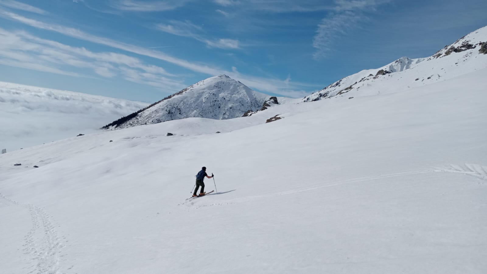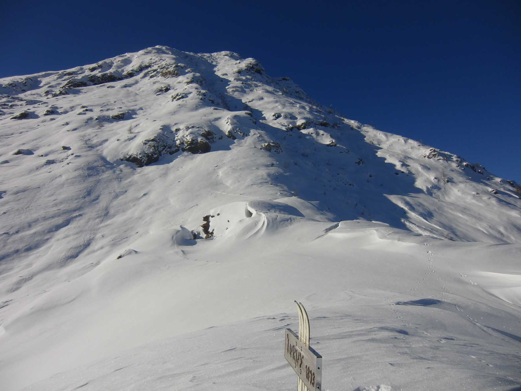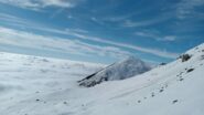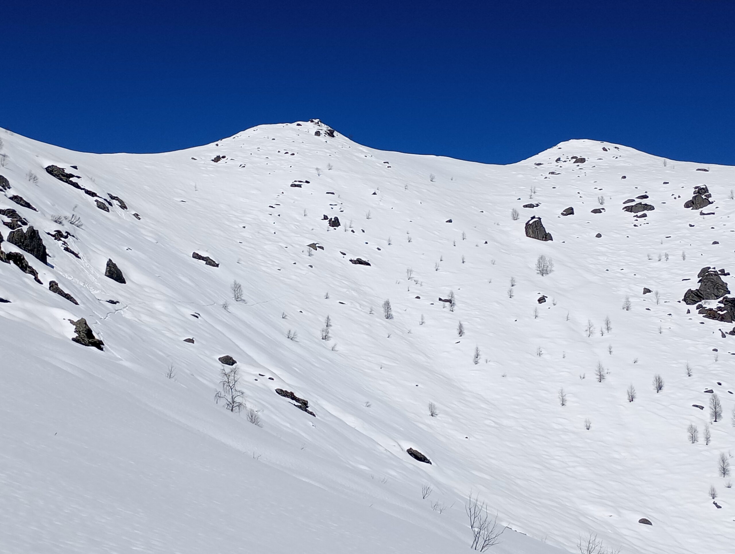Verso i 1500 m è visibile tutto il resto della salita, con la vetta tra la Torretta del Prete a sinistra e la Punta Sourela a destra. Per ampi e bei pendii portarsi al colletto a sinistra della vetta, poi per la breve e pianeggiante dorsale toccare le roccette della sommità.