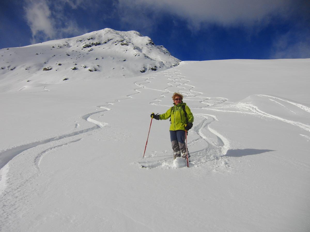 Partiti dal Crest; alle Freste trovato la traccia di Valter di Niquidaj (grazie) che abbiamo seguito alla Punta del Tourouj o Cevrajet.