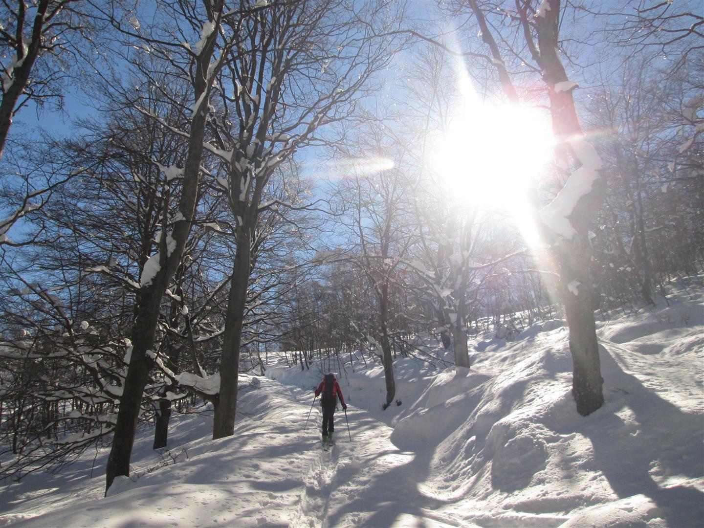 Partenza alle 12 da Niquidetto su traccia esistente e su 30 cm di fresca. Primi 200 m dsl in bosco e poi pendii aperti dove, il Civrari ed il Ciarm del Prete, ti accompagnano in un ambiente molto suggestivo. Scesi su neve quasi immacolata e leggermente appesantita fino alle Muande Freste. Poi divertente alternanza di stradina e tagli nel bosco. Ultimi brevi pendii verso Niquidetto con neve leggermente crostosa.