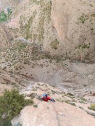 - L2 6c Passo duro sopra la sosta, poi facile fino ad un bellissimo muro rossastro breve ma intendo