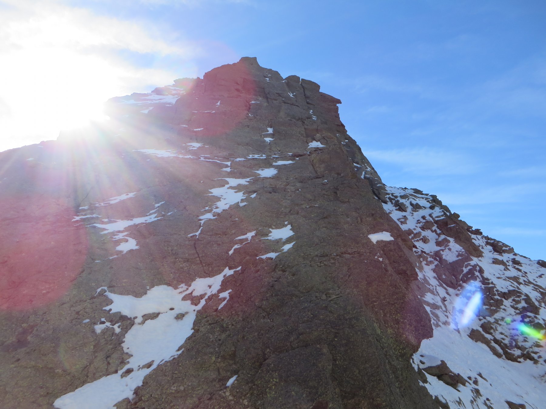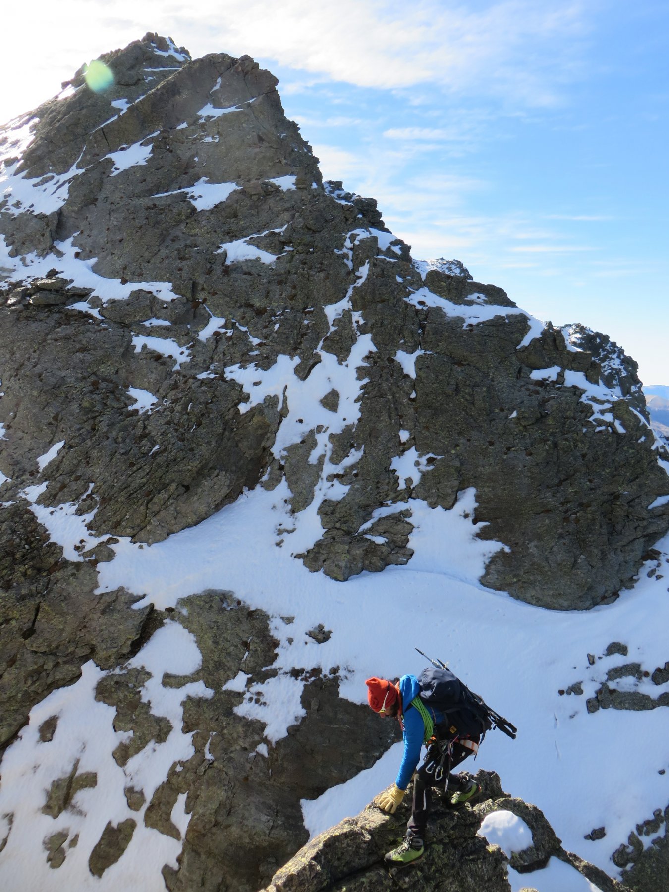 La salita può essere generalmente sempre abbandonata lungo i numerosi canali ripidi esposti a SE.