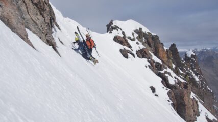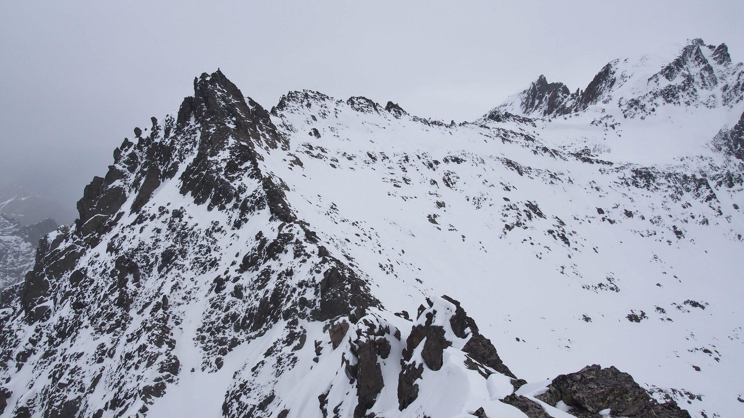 Si portano gli sci 25-30min, abbiamo risalito il canale NW (quello prima del colle lausa) sci in spalla…usciti al colle traverso in pieno sole ma fortunatamente temperature basse, poi risalita del canale che sbuca in cresta ricongiungendosi all’itinerario normale…ottimo lavoro di tracciatura col socio 🙂 come previsto è arrivato il brutto tempo, ma nuvole alte per cui buona visibilità, scesi dalla normale. Il traverso si fa bene con gli sci, nell’attesa salito la vicina cima Lausa sotto una leggera nevicata.