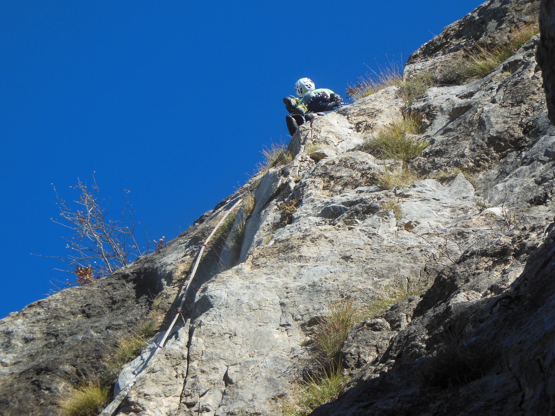 Via su roccia discreta, integrabile facilmente con protezioni mobili nei punti con chiodatura più distanziata.