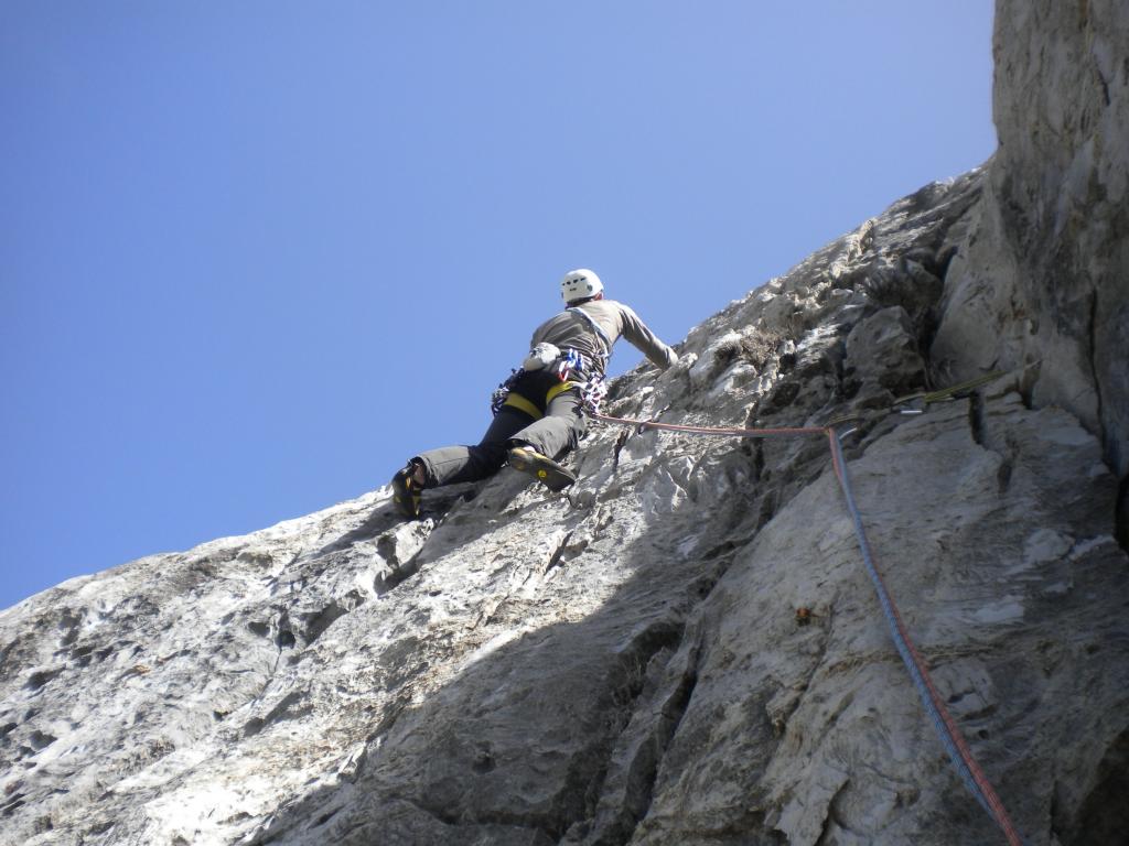 via molto bella sopratutto nella parte bassa dove percorre con 2 tiri una fantastica placca. Utili i "piedi"