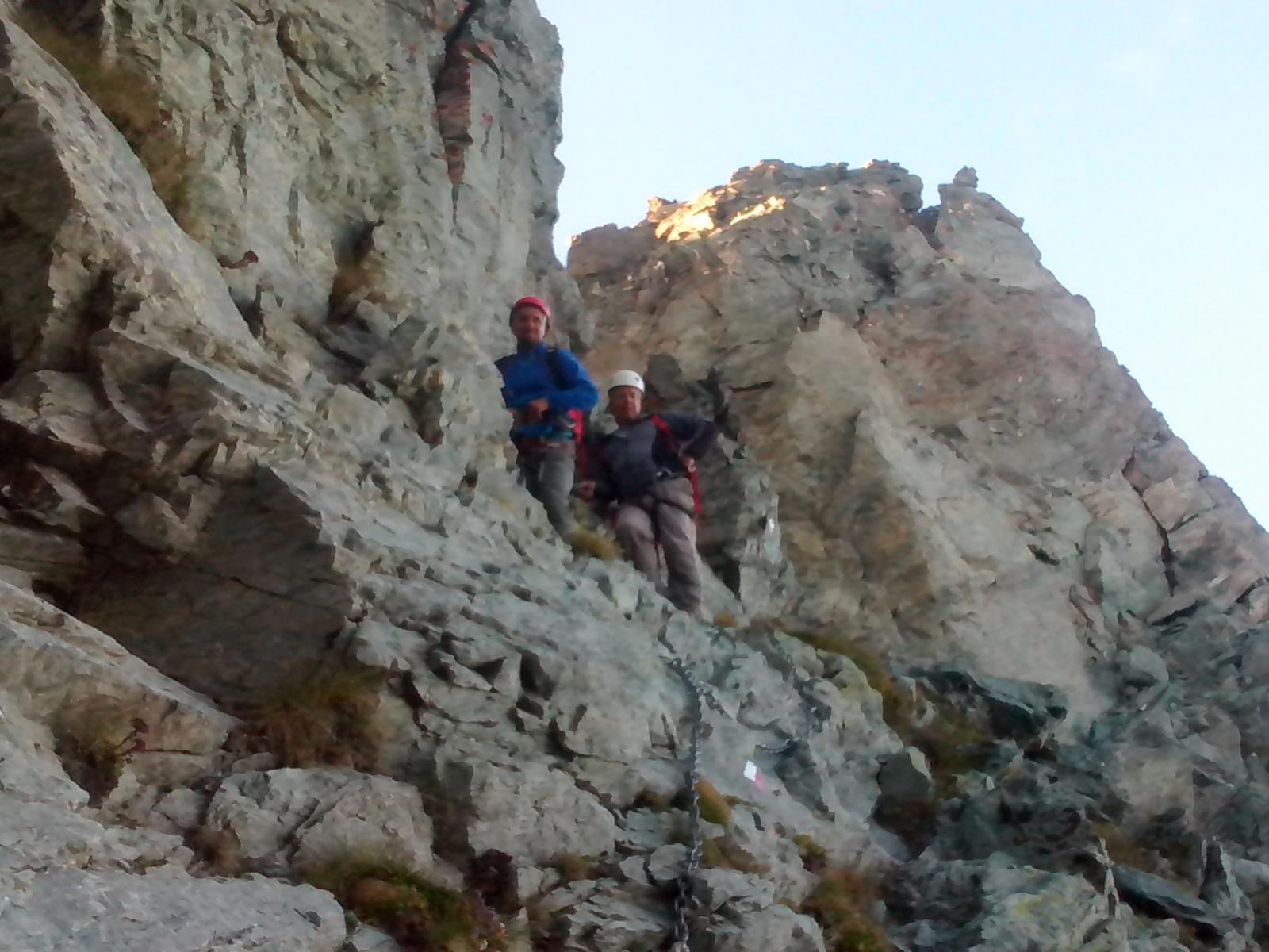 Bella! Ci è piaciuta molto, in merito alla chiodatura si potrebbe così riassumere: i passaggi più impegnativi sono protetti impeccabilmente, il resto, tra un fix e l’altro bisogna guadagnarsela. Il primo tiro ci è parso protetto più generosamente di altri di uguale difficoltà. In linea di principio, quando si comincia a desiderare “una protezione”… questa spunta! ( anche noi abbiamo avuto qualche difficoltà nel reperire i fix nonostante fossimo “oftalmologicamente” ben assortiti… un miope, un presbite ed un emmetrope!)