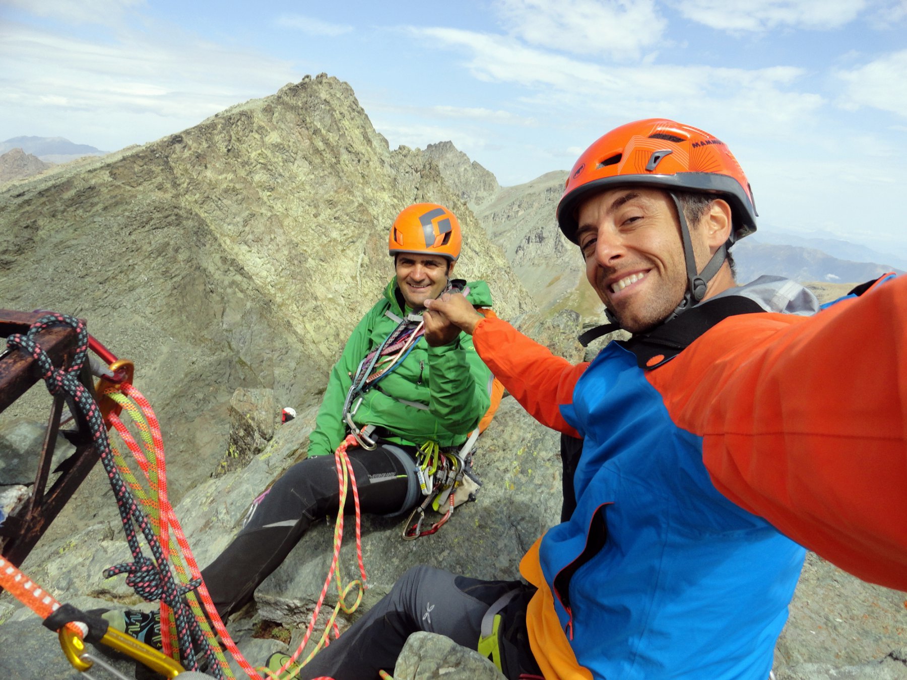 Dopo 17 anni di nuovo alla cresta est della Udine. Via sempre bella anche se nella parte centrale un po discontinua. Tratti esposti ma gestibili, spittatura perfetta , anche le soste con due spit e anelli da collegare in ordine. Bella via con Danilo alla sua prima cresta di montagna. Pernotto al Giacoletti con seguente gita alla Venezia.