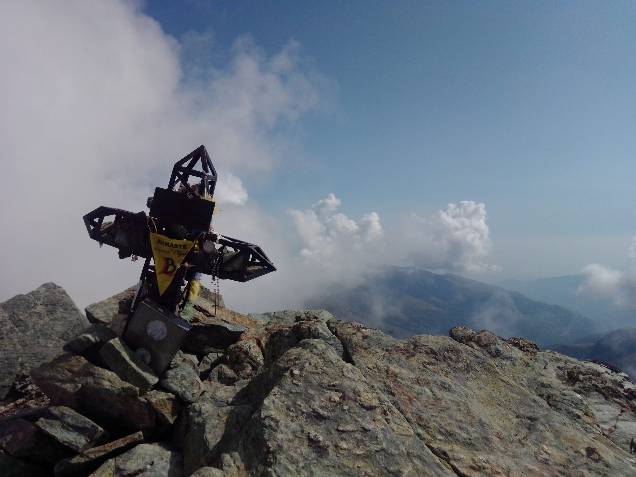 Ottimo il panorama dalla piccola e aerea vetta, con il Viso che per qualche istante ha fatto capolino tra le nubi. Spettacolare la veduta sul sottostante Rifugio Giacoletti, a perpendicolo 300 metri più in basso. Oggi molta gente in quota e pienone al Pian del Re.