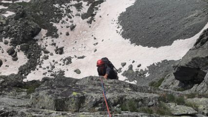 Via plaisir, carini i primi tiri, noi abbiamo seguito la relazione ma L9 era più un 4 che 6a. Poca neve all’attacco della via