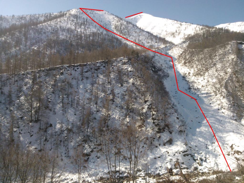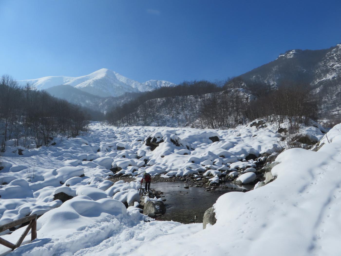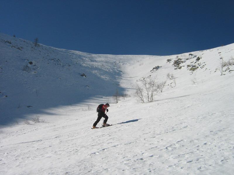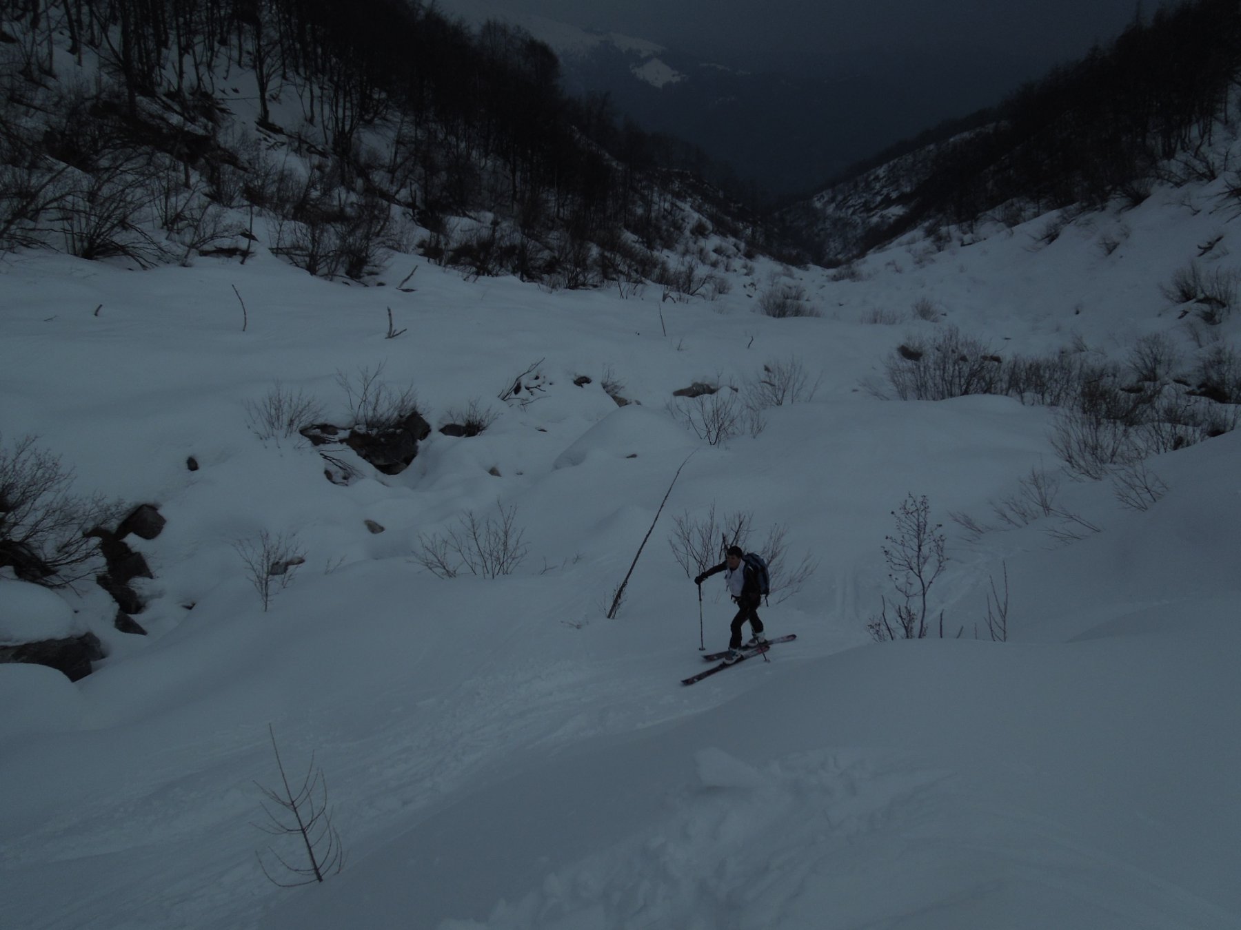 a) OS max 35° – lungo il canale nord (rio scravassone) e ricongiungersi alla strada della palazzina nei pressi della loia scura, 1250 m (nel caso di annate con buon innevamento si può anche procedere lungo il greto del sangone, astenersi astemi da biula party).