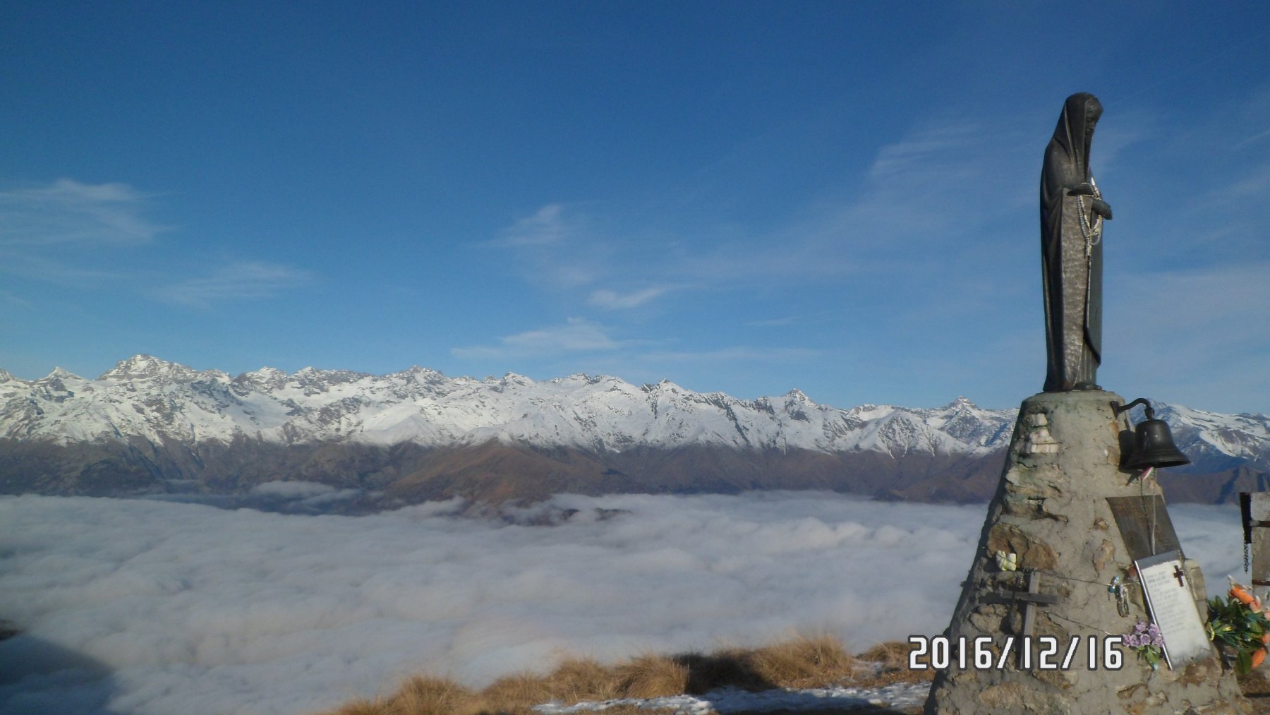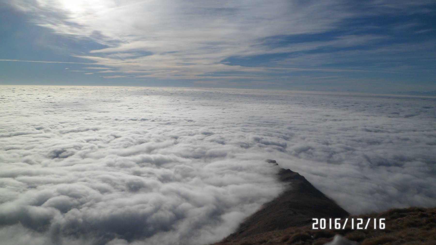 Cielo nuvoloso alla partenza da Piano Audi, poi dentro la foschia e a 1500 m di quota il sereno e lo spettacolo fiabesco verso il Monviso. Passato dal Soglio con lo spettacolo del mare di nubi che si tendeva verso la pianura. Arrivato all’alpe dell’Uja sono tornato indietro visto le condizioni del sentiero, Scendendo appena sotto il rifugio vedo salire con passo deciso e un discreto zaino sulle spalle, dove ha probabilmente nascosto buona parte dei suoi 84 anni anni, Mario diretto al Soglio. Ci fermiamo a parlare un pò, è un piacere conoscere persone di questo stampo. Ci lasciamo con l’augurio di incontrarci di nuovo su qualche sentiero in futuro.