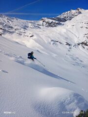 Raramente do 5 stelle. Condizioni spettacolari di neve farinosa ed intonsa. Oltre mezzo metro di fresca nel vallone del Carro, oggi tutto per noi.