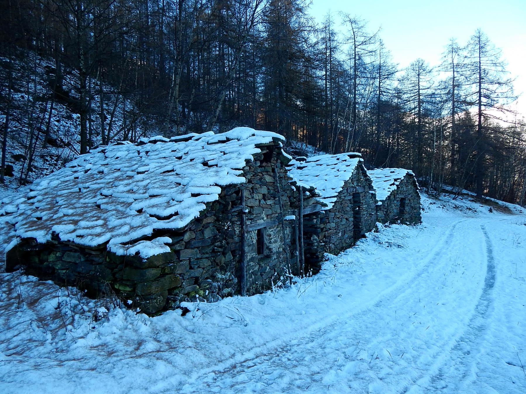 Inverso raggiungo Urtirè già innevata, scendo su carrareccia