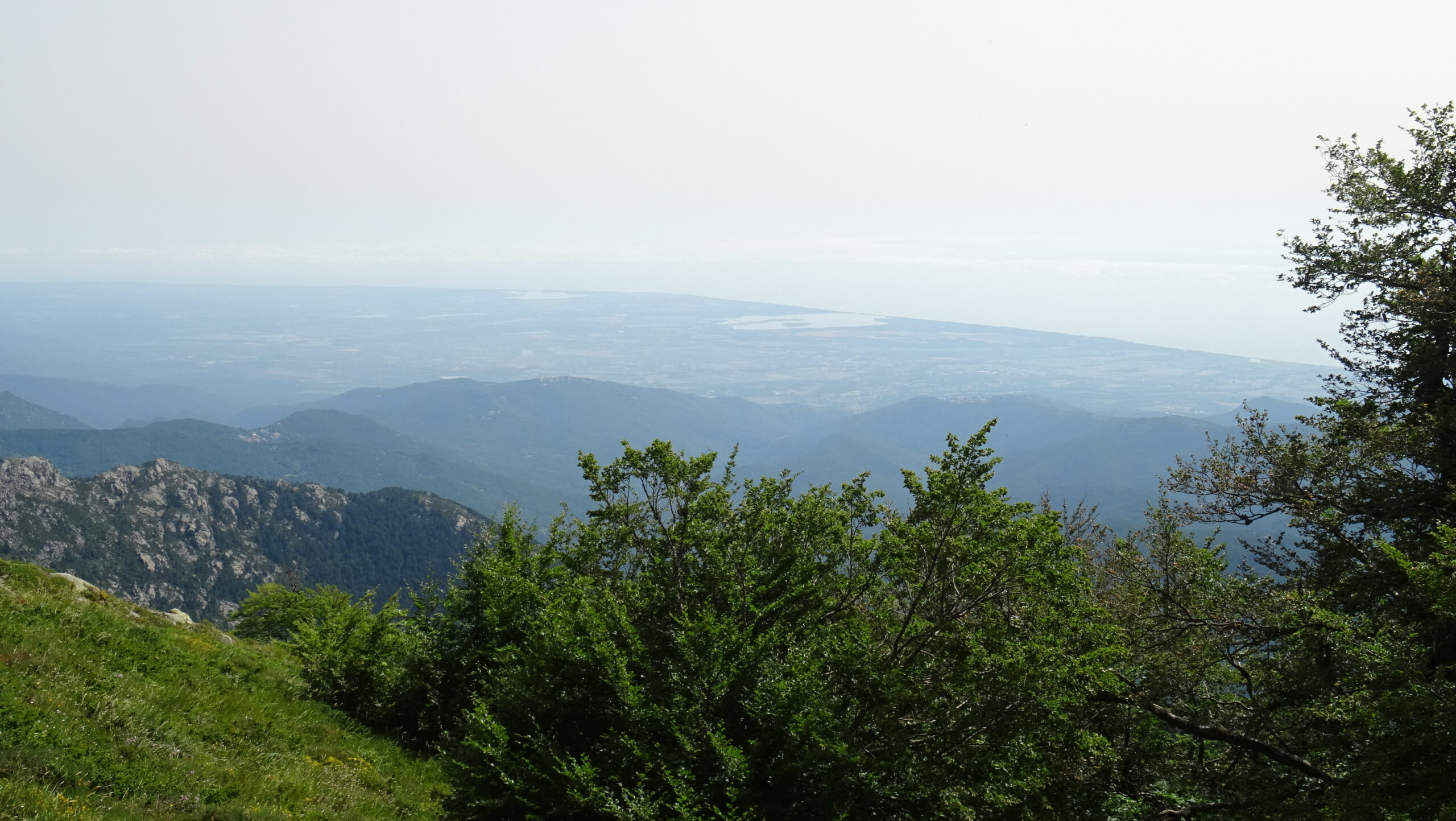 Ancora una volta questo giro vicino a Ghisonaccia, oggi al sole in alto mentre al mare stranamente è rimasta una spessa foschia. Ho notato che ci sono sempre più escursionisti del GR20 che arrivati al rifugio proseguono per quello successivo, dimezzando così il numero di tappe. il Sito GR-GO.fr pianifica tutto il GR20 in 5 tappe triple, bella sfacchinata per giovani.