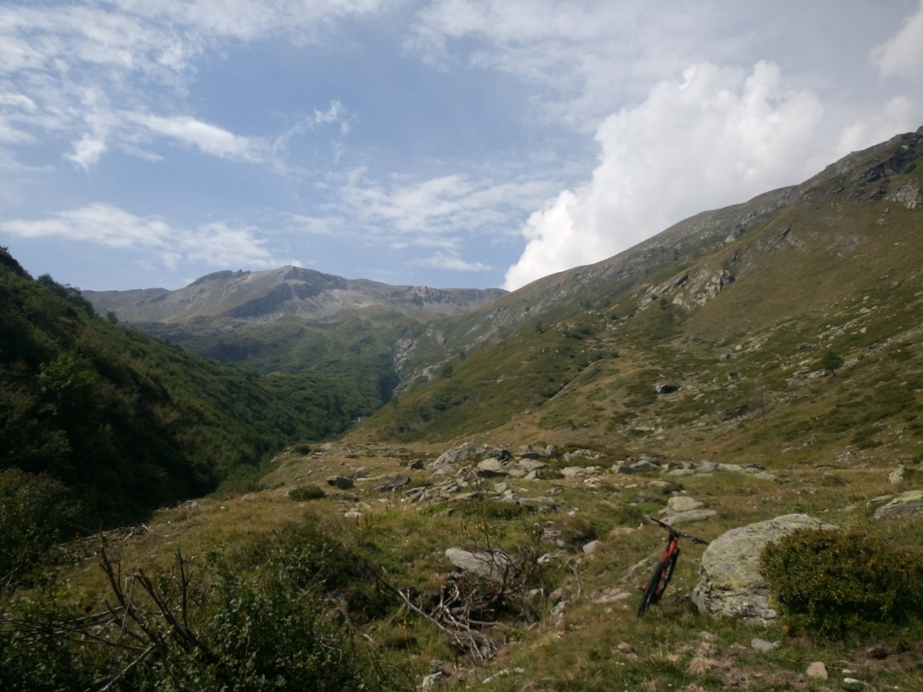 Discesa: stesso itenerario della salita fino alle caserme del Gias, poi prendere sentiero 806 per il colle Clapier. Dal bivio inizia la parte più tecnica della discesa, un traverso verso Nord con tratti NC e molto sconnessi fino a S4. Con alcuni munta cala un po’ in sella e un po’ en poussage si raggiunge il colle Clapier, 2482m. Da lì solo più discesa lungo la via annibale, sentiero 805. Parte alta erbosa con qualche roccia smossa (max S2), da circa 2200m inizia una panoramica mulattiera che porta prima alle prese dell’acqua dell’Iren per poi attraversare il torrente sulla sponda dx idro (max S3). Le pendenze dopo il ponte tendono a calare, ma il fondo peggiora con alcuni massi franati sulla traccia (S3). A quota 1700 si attraversa un bel ponte a tre campate in pietra, ritornando sulla sx idro e il fondo benché più facile risulta sempre irregolare per le molte pietre fino all’ingresso dei boschetti inferiori dove si trovano pressoché foglie e terra. Parte finale lungo una carrareccia pietrosa molto scassata fino al ricongiungimento con la strada asfaltata (Case Porchera – San Giacomo).