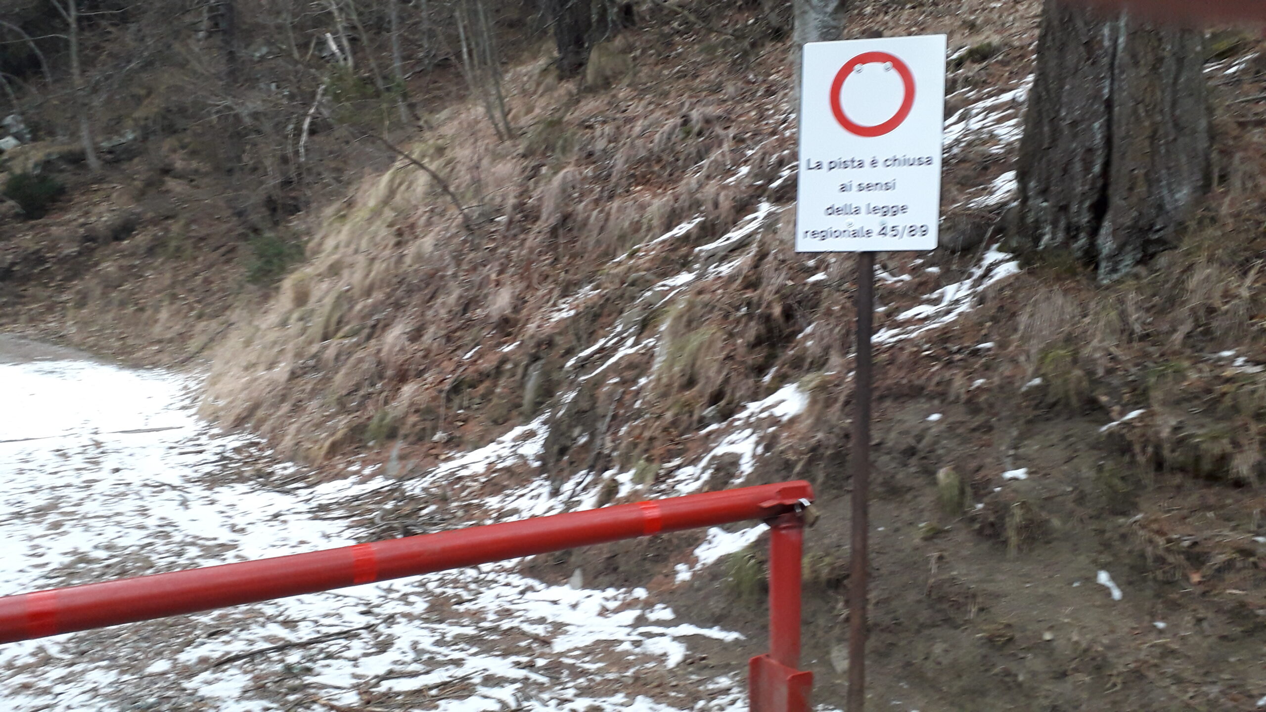 Partito in realta’ per la salita alla Rocca del Prete dalla sbarra da dove per la stradina sulla sinistra in discesa in breve si arriva al sacrario. Un robusto lucchetto applicato alla sbarra stessa ne vieta ancora l’accesso con mezzo privato fino all’alpe Gheit. Probabilmente rimarra’ abbassata ancora per un bel po’.