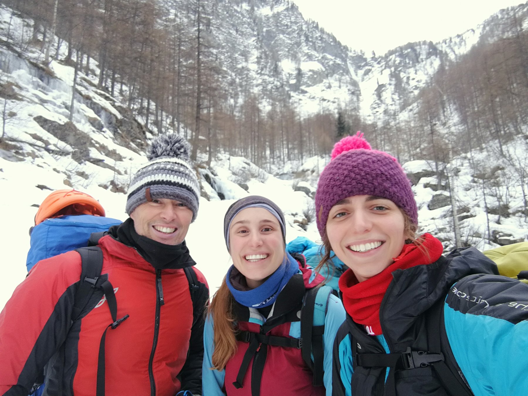 Ghiaccio compatto e ben proteggibile per questo gioiello. con Valentina e Silvia generose di sorrisi e tenaci compagne di salita!