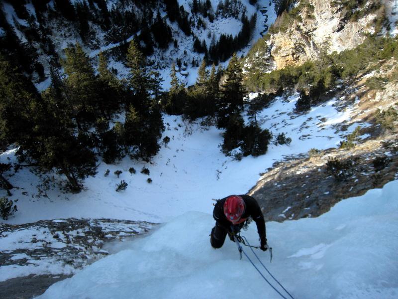 L2: Bel tiro tecnico e divertente.Sosta su albero,WI4,50mt.