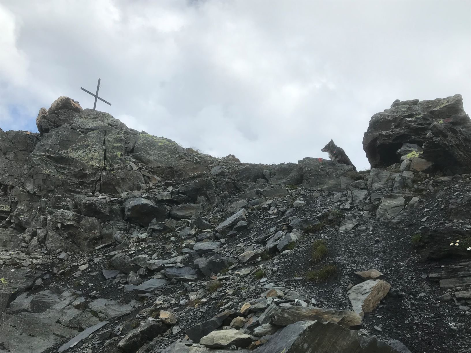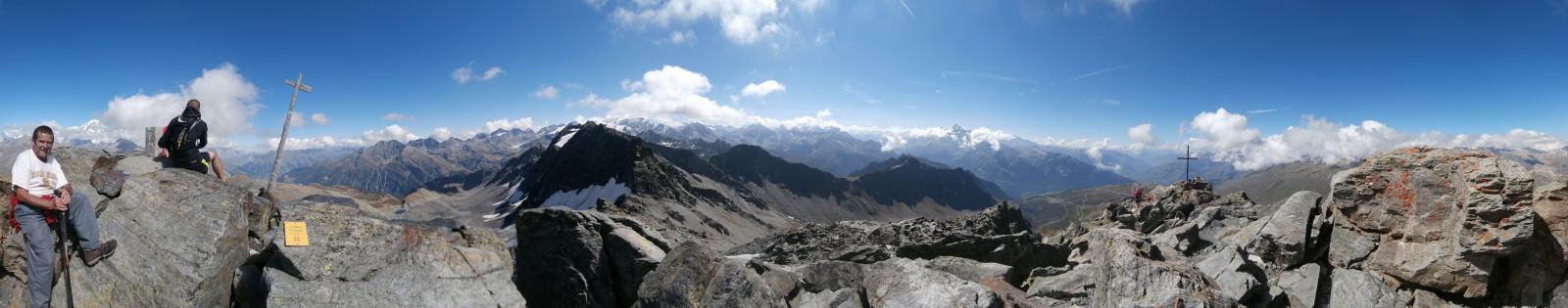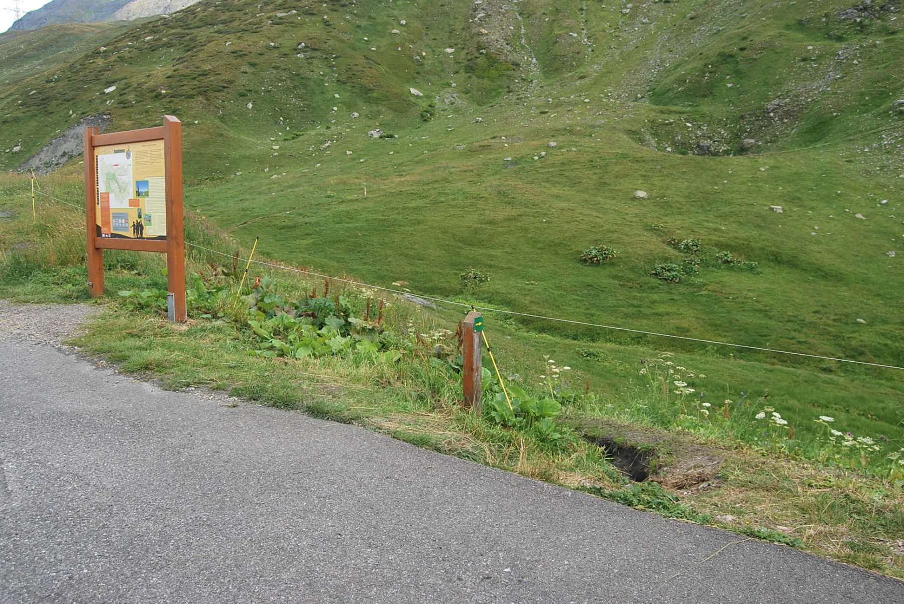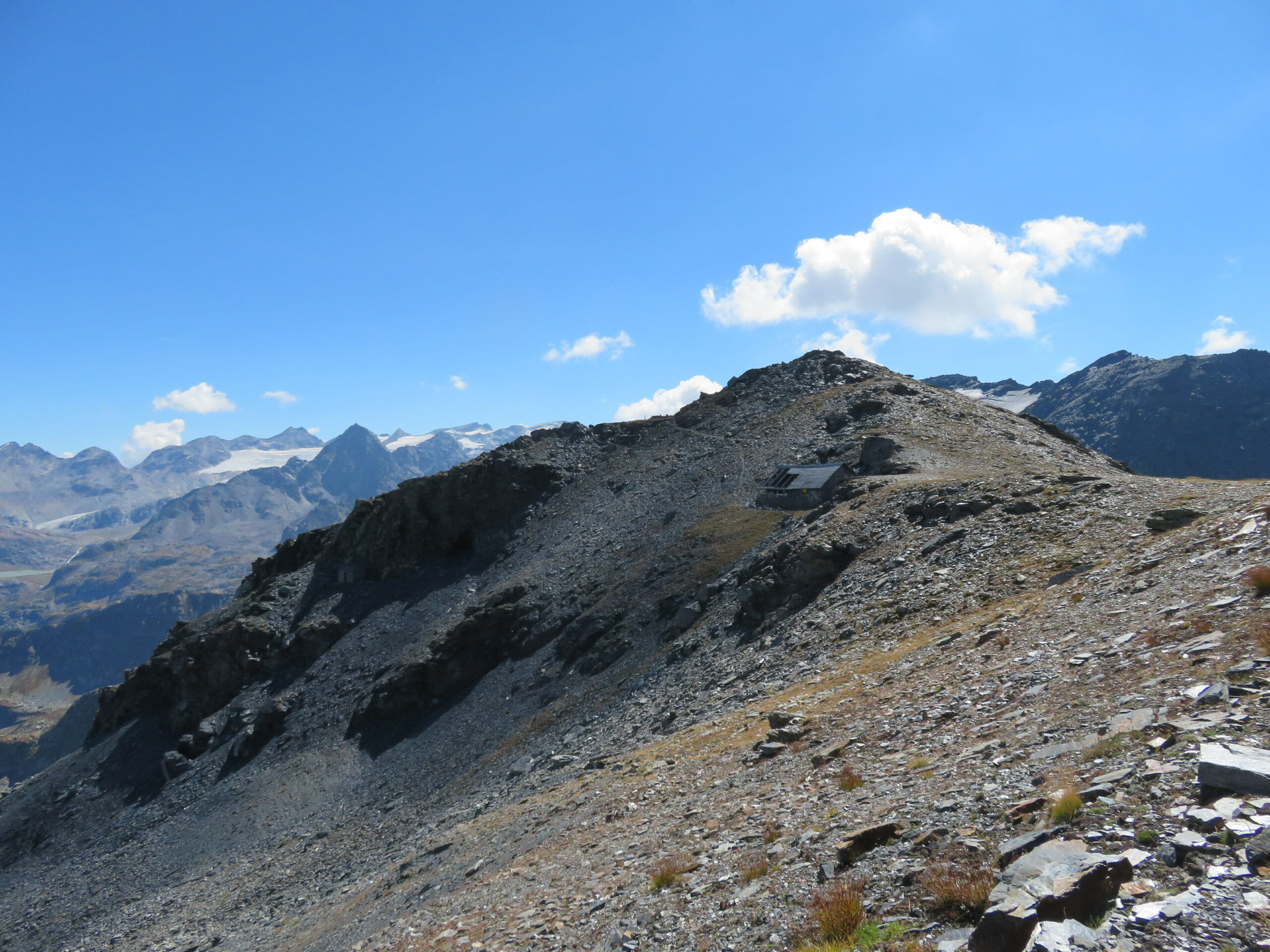Dalla punta prendere verso Ovest (versante Francese)il sentiero (Attenzione, nei primi 40-50 m di dislivello il sentiero è ripido e esposto)che scende al col de la Traversette 2383. Da quì si scende alla strada statale nei pressi dell’ospizio, a 1,6 Km dalla partenza.