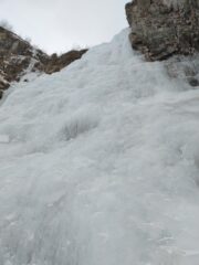 Cascata ben formata con ghiaccio abbondante, lavorata dalla numerose ripetizioni con più linee di salita fattibili.