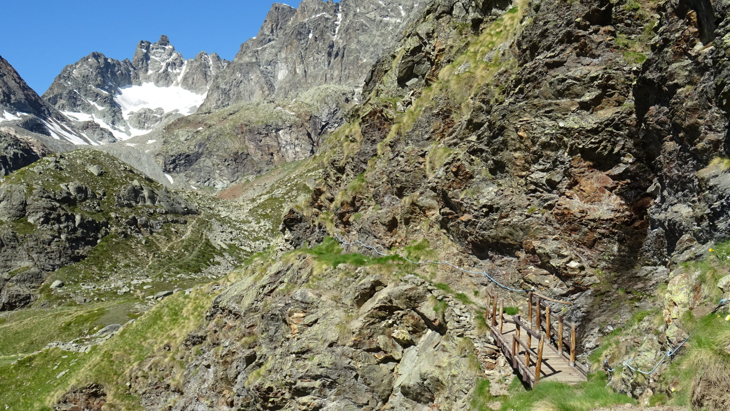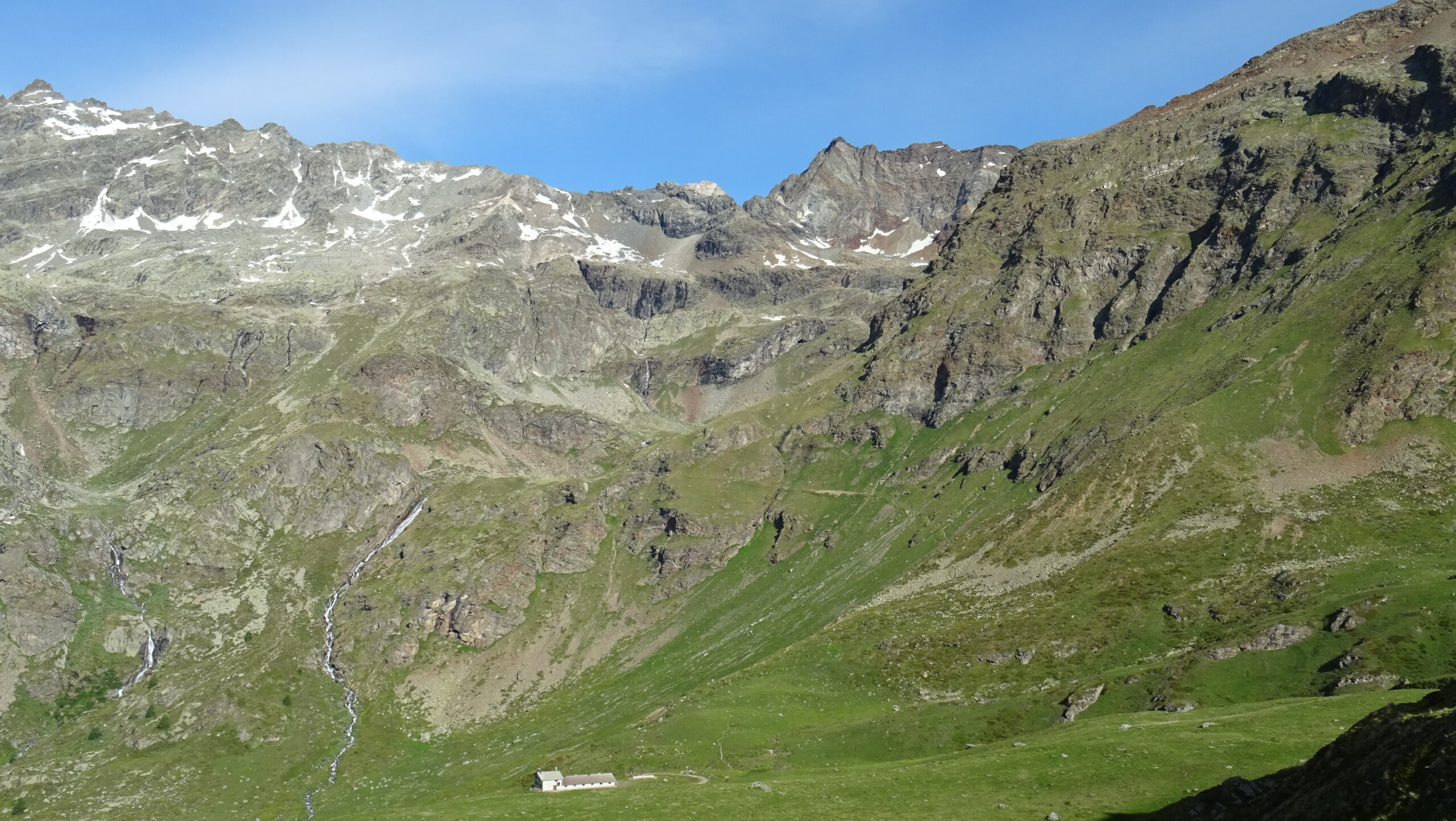 A circa 2600 il sentiero (sempre ben tracciato) passa accanto ad alcune caverne (la leggenda le vuole create dal gigante Gargantua) per poi arrivare al minuscolo (due soli posti !) bivacco Manenti (ancora ben arredato) e, a 2900 metri, al rifugio Perucca-Vallermin.