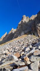 Era un po che volevo mettere il naso in questo vallone solitario e il modo giusto l’ho trovato andando a percorrere questa via. Avvicinamento in circa 2 ore abbondanti. Attacco della via segnato da chiodo con cordino rosso i primi 4 tiri chiodati in modo logico e volendo si può integrare. cresta finale facile ma assolutamente da non sottovalutare c’è ancora qualche passo impegnativo. Materiale usato: 2 mezze da 40 una serie di friend dallo 0,2 al 2 martello e chiodi portati ma non usati. Con Marco