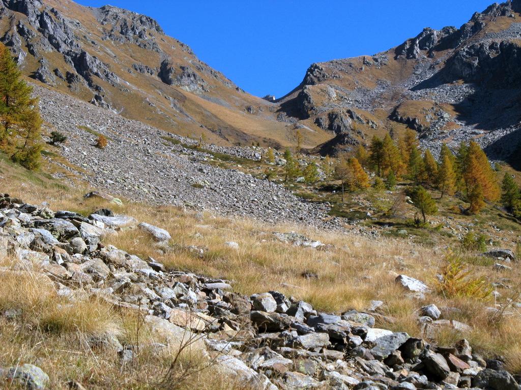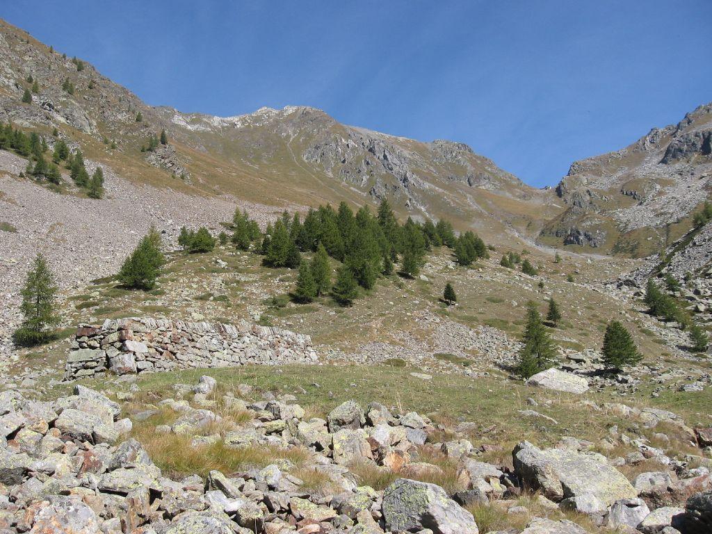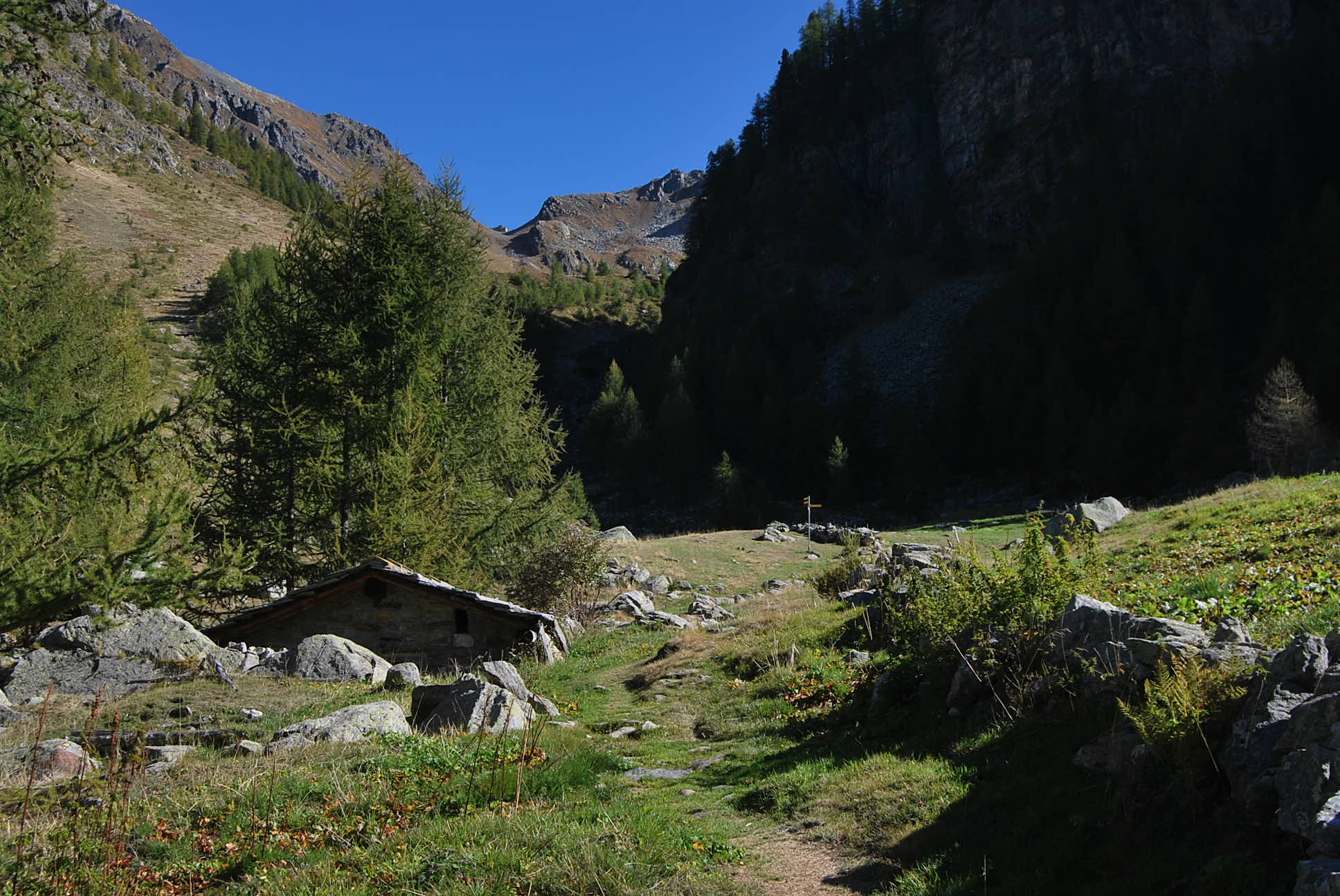 Al termine del canalone la pendenza si attenua e si transita accanto ai ruderi di alcuni casolari. Successivamente si attraversa un’altra fascia di bosco oltre la quale si tocca l’alpeggio Cialfrezzo di sotto (m 1900, ore 1,45).