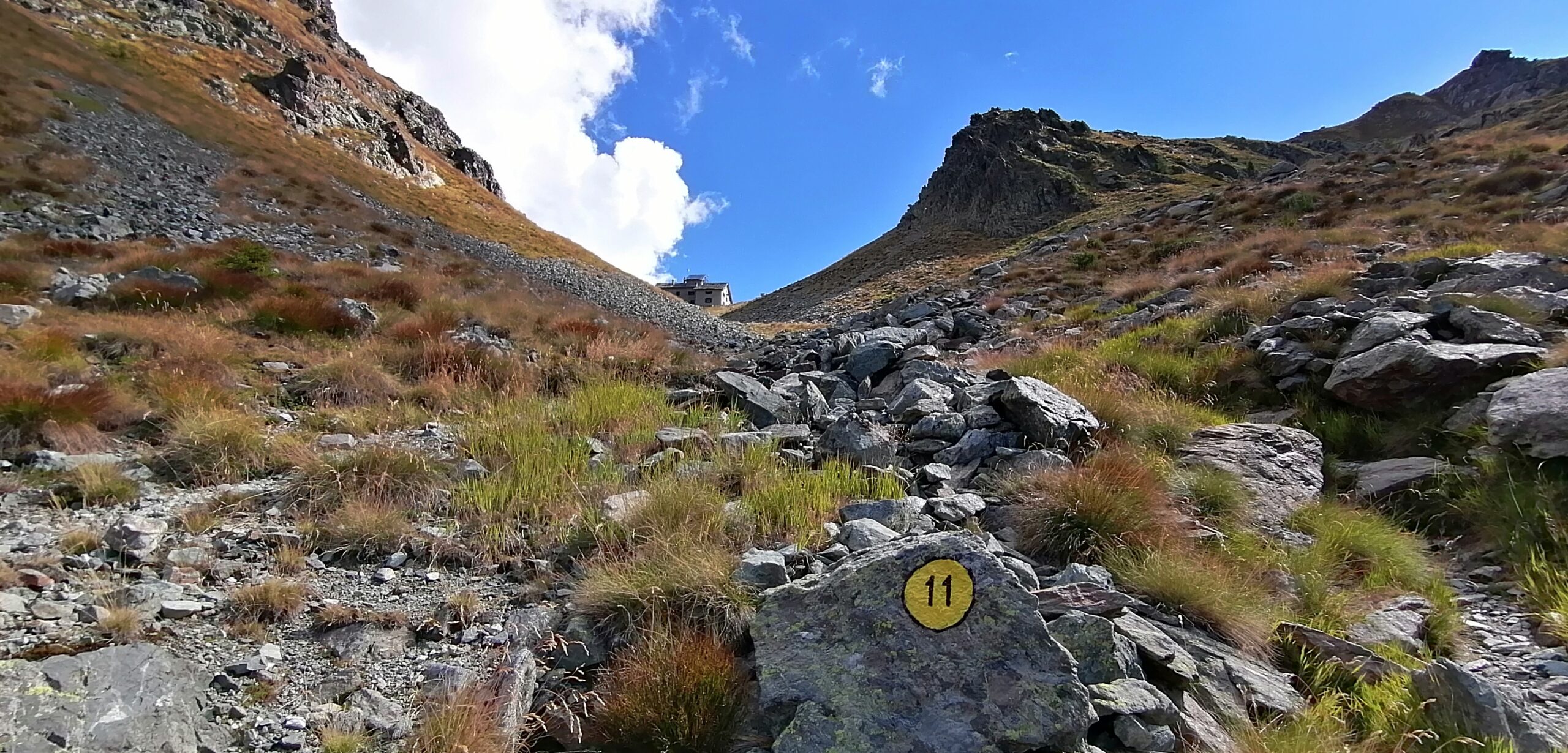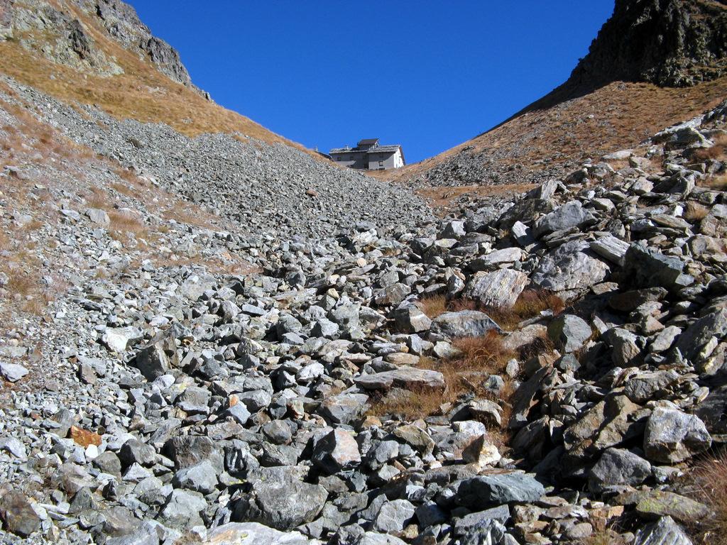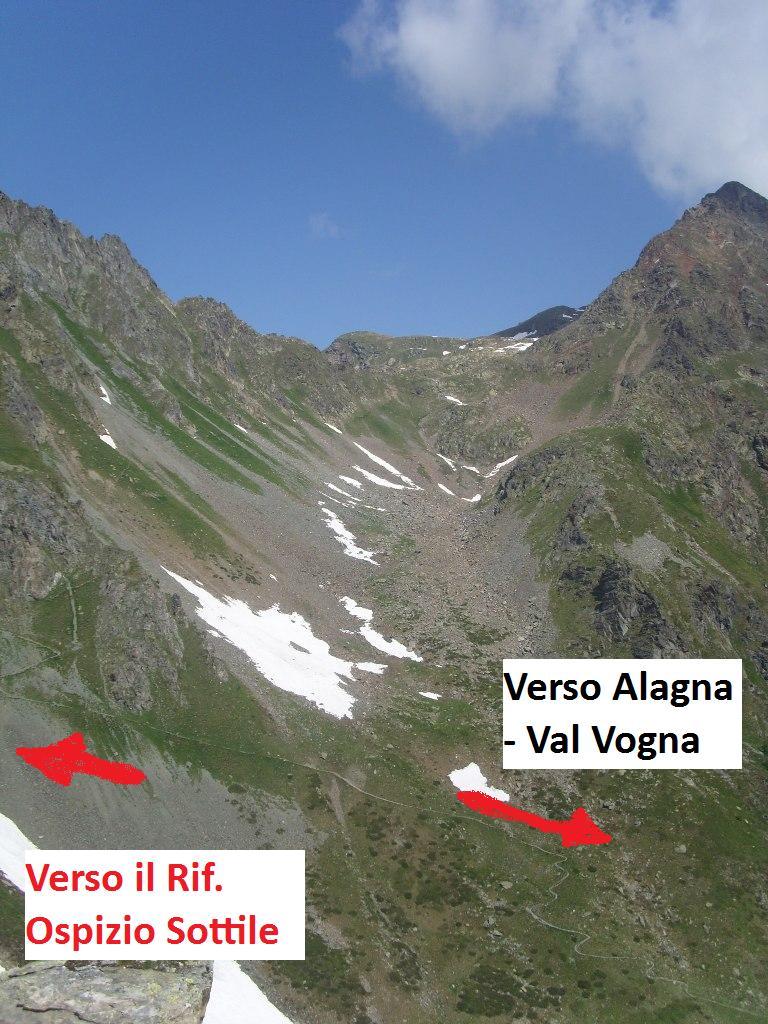 Si attraversa la conca e si inizia a salire il ripido pendio sul quale il sentiero compie ampie svolte, per toccare infine il Colle di Valdobbia ove sorge l’Ospizio Sottile (m 2480, ore 1,15).