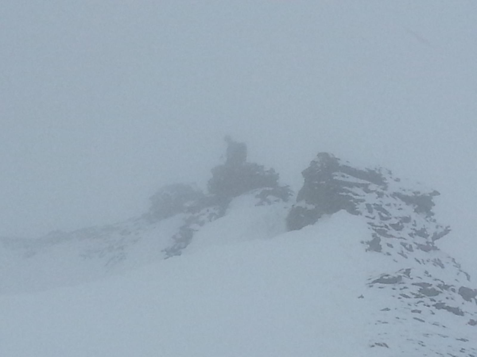 Ha nevicato debolmente tutto il giorno con visibilità scarsa a tratti assente. Si parcheggia poco dopo il ponte d’Almiane e si calzano ancora gli sci immediatamente. Ho battuto la traccia per il canalino diretto alla punta su 15/20cm. di fresca umida che teneva perfettamente. In quest’occasione coltelli e ramponi erano inutili. La temperatura si è mantenuta tutta la mattinata sui 0°C. Ho tracciato la salita con il gps ed ora provo ad inserirla. La discesa è stata divertimento puro con neve fresca umida su fondo compatto prima su pendio e canalino ripidi della parete nord-ovest e sulla parte inferiore del canalone, poi vellutino umido ma scorrevole sugli ampi pendii della sx orografica del vallone ed infine fra i pini del bosco della parte bassa.