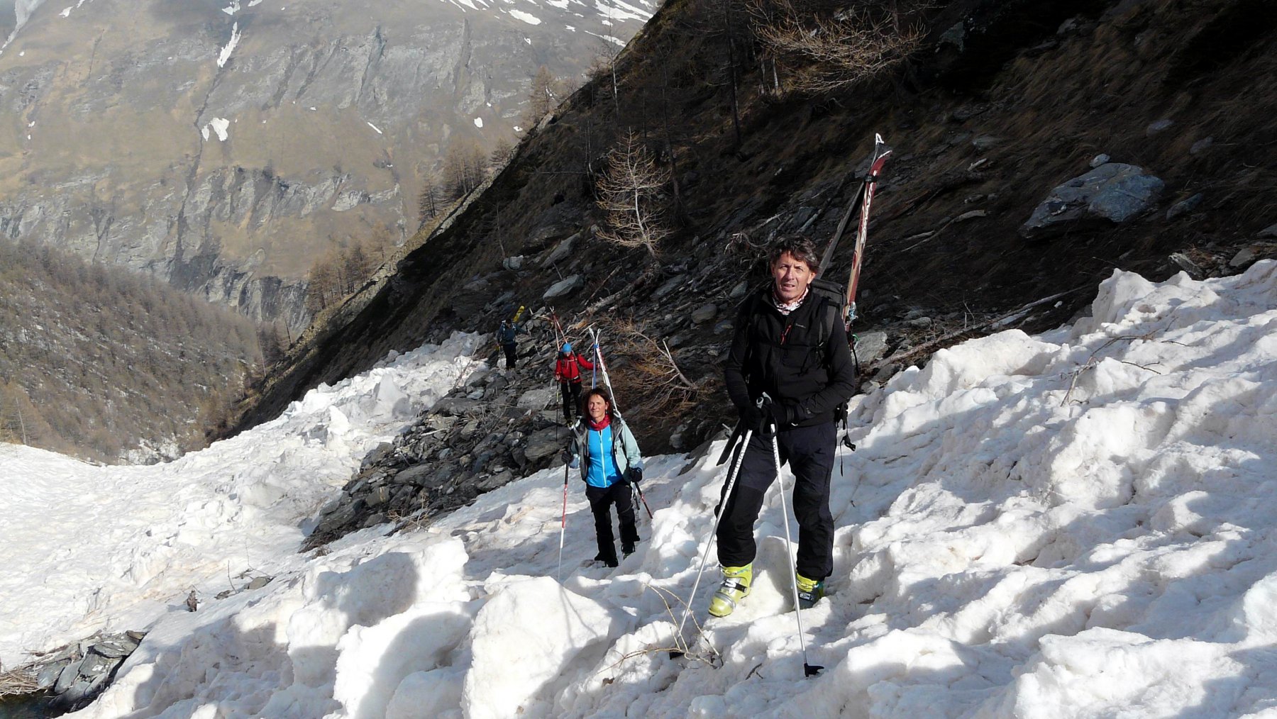 Oggi meteo centrata, sprazzi di sole, temperature in linea con la stagione, niente vento; portage 15 min. sul senterino estivo poi ottimo rigelo sino in cima, rampant eventualmente utili; in discesa primi 300 m. su crosticina non portante ma abbastanza morbida, poi bellissima e liscia crosta sino al fondo del vallone; nella parte più bassa neve assai mollata; si arriva ancora al ponte con gli sci ma, per la salute delle solette meglio i 15 min. di portage in discesa.