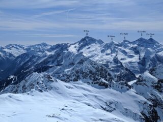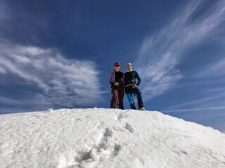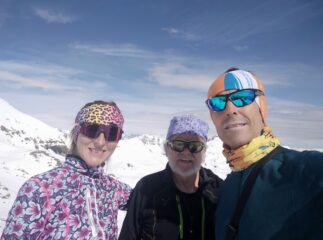 giornata calda senza un filo d’aria,saliti prima alla Valnera e poi alla Valfredda con discesa nel canalone vicino al Bieteron, tolto una stella per il brutto attraversamento molto svalangato sulla stradina sotto al rif.Arp per il rientro sulle piste, oggi con Daniela e Marco.