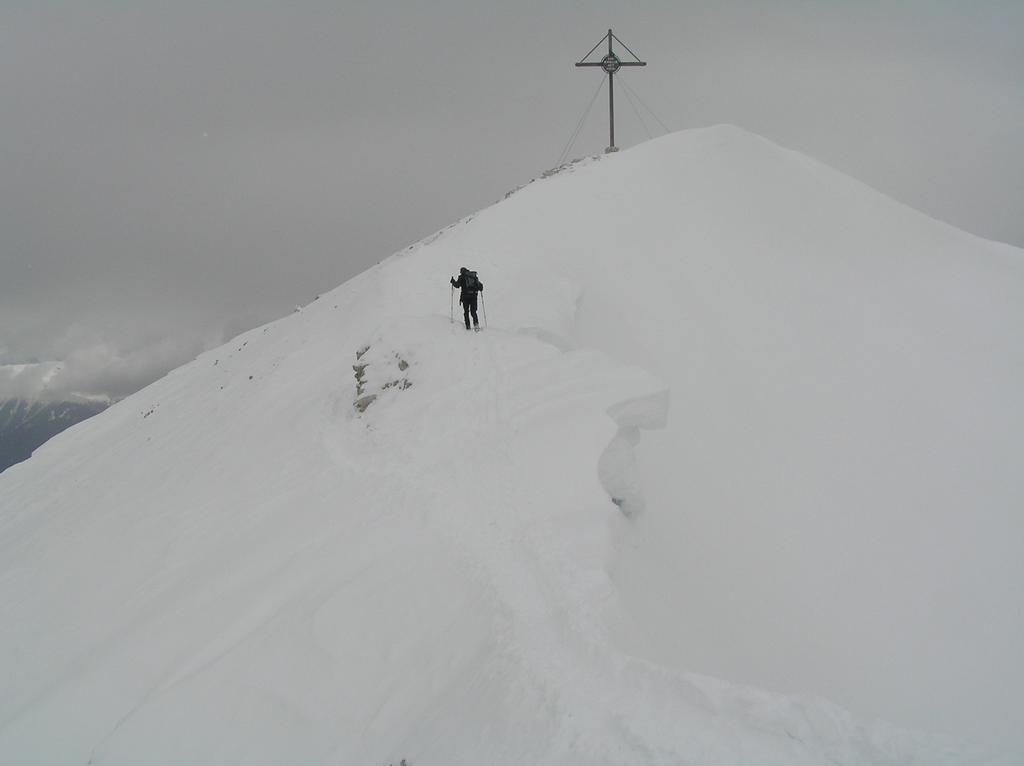 Si procede verso Est fino a quota 2500, da qui in direzione Nord Ovest. Si gunge all’anticima, dove si lasciano gli sci per raggiungere la croce della cima attraverso la breve sella.