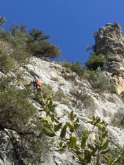 Via di stampo alpinistico che corre lungo il filo dello spigolo. Arrampicata atletica con passaggi esposti è mai banali.