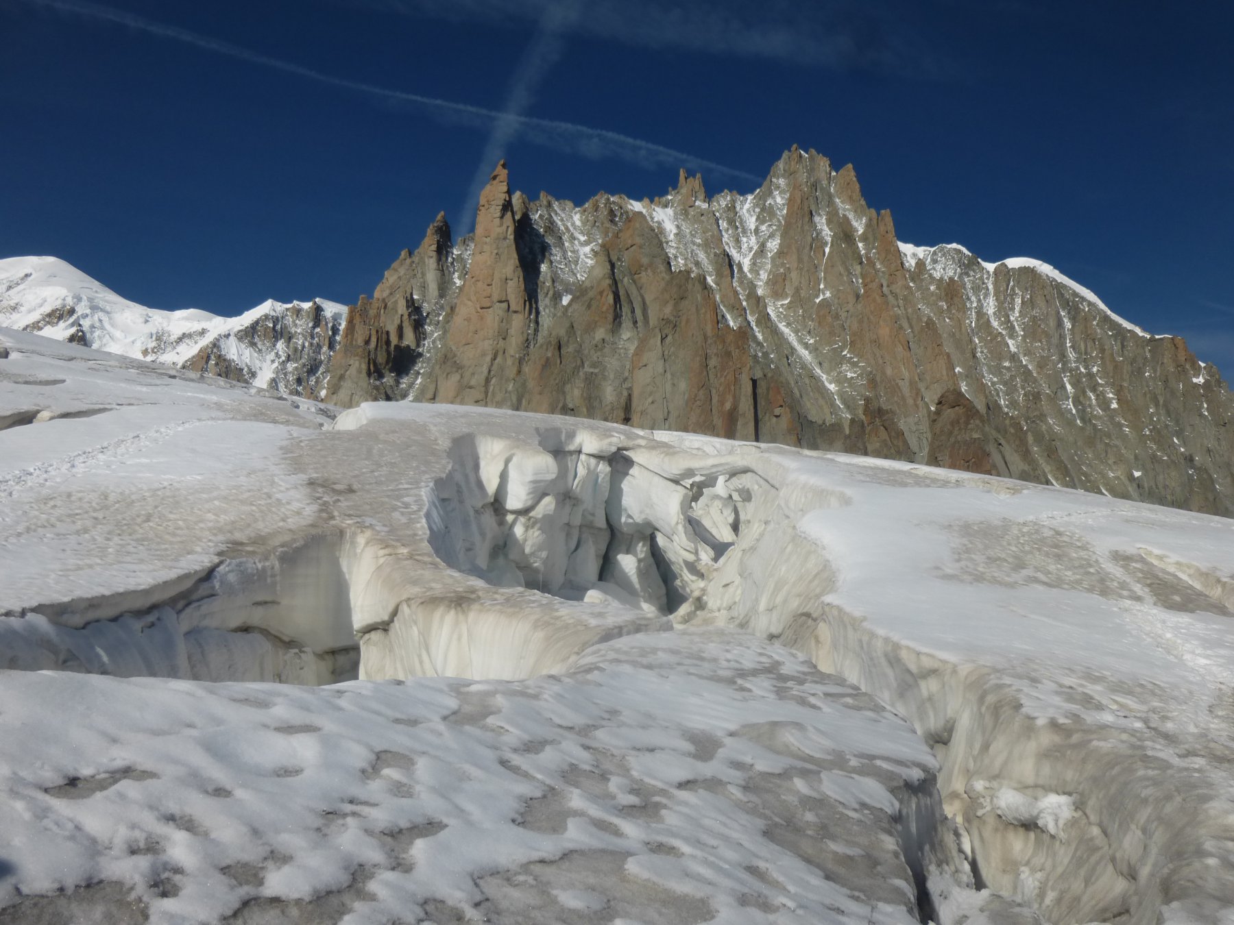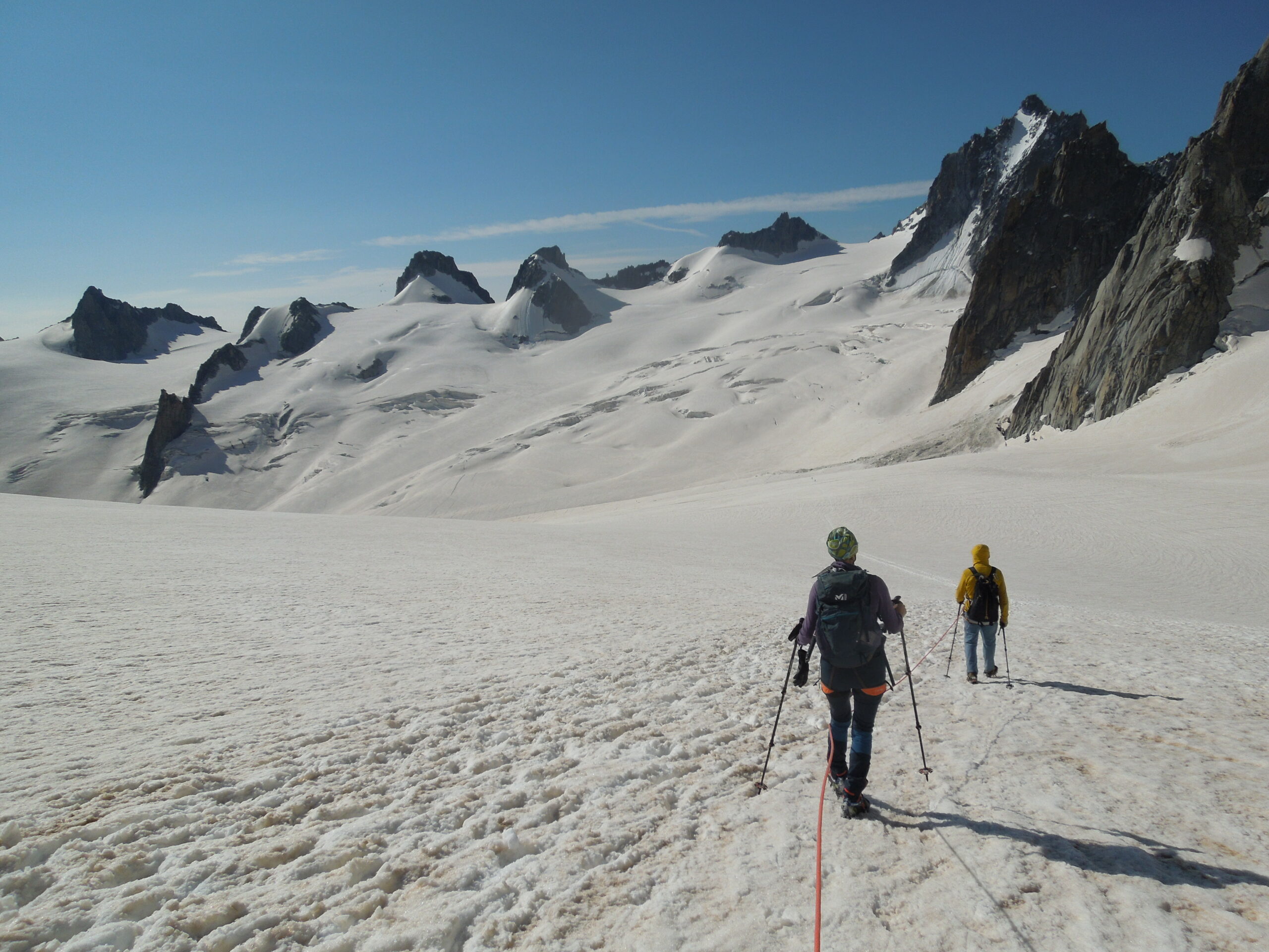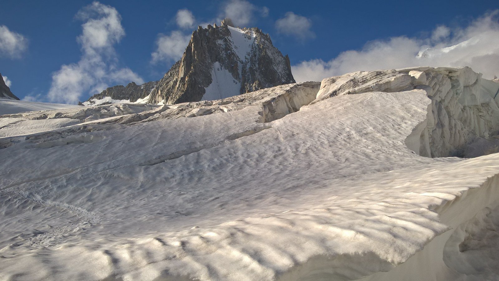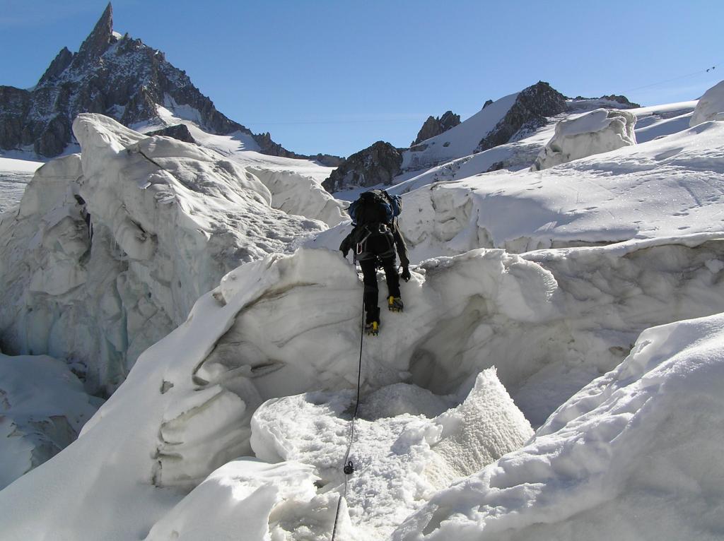Rientro per la medesima via o in alternativa con la funivia (tratta Aiguille du Midi-Punta Helbronner 25.5€) quando questa è in funzione.